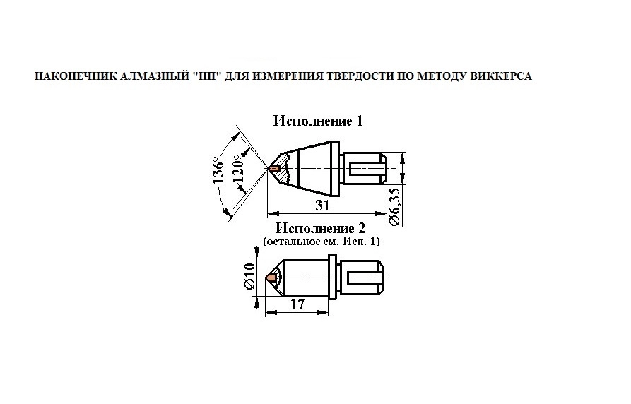 Наконечники алмазные для измерения твёрдости металлов и сплавов твердомерами «стационарного» типа. Наконечники изготовлены в соответствии с ГОСТ 9377-81 и прошли первичную поверку при выпуске из производства по ГОСТ 8.044-80.