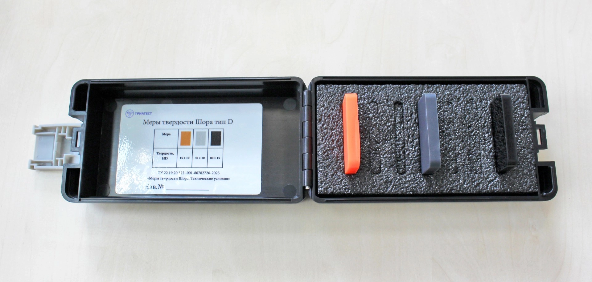 Набор мер твердости Шора типа D (3 шт.) используется для проверки точности и калибровки твердомеров (дюрометров) Шора типа D. Этот комплект состоит из трех образцов резины и пластмассы, предназначенных для воспроизведения различных значений твердости по шкале Шора D в соответствии с ГОСТ 24621-91 (ISO 868-85) и ГОСТ Р ИСО 7619-1-2009.