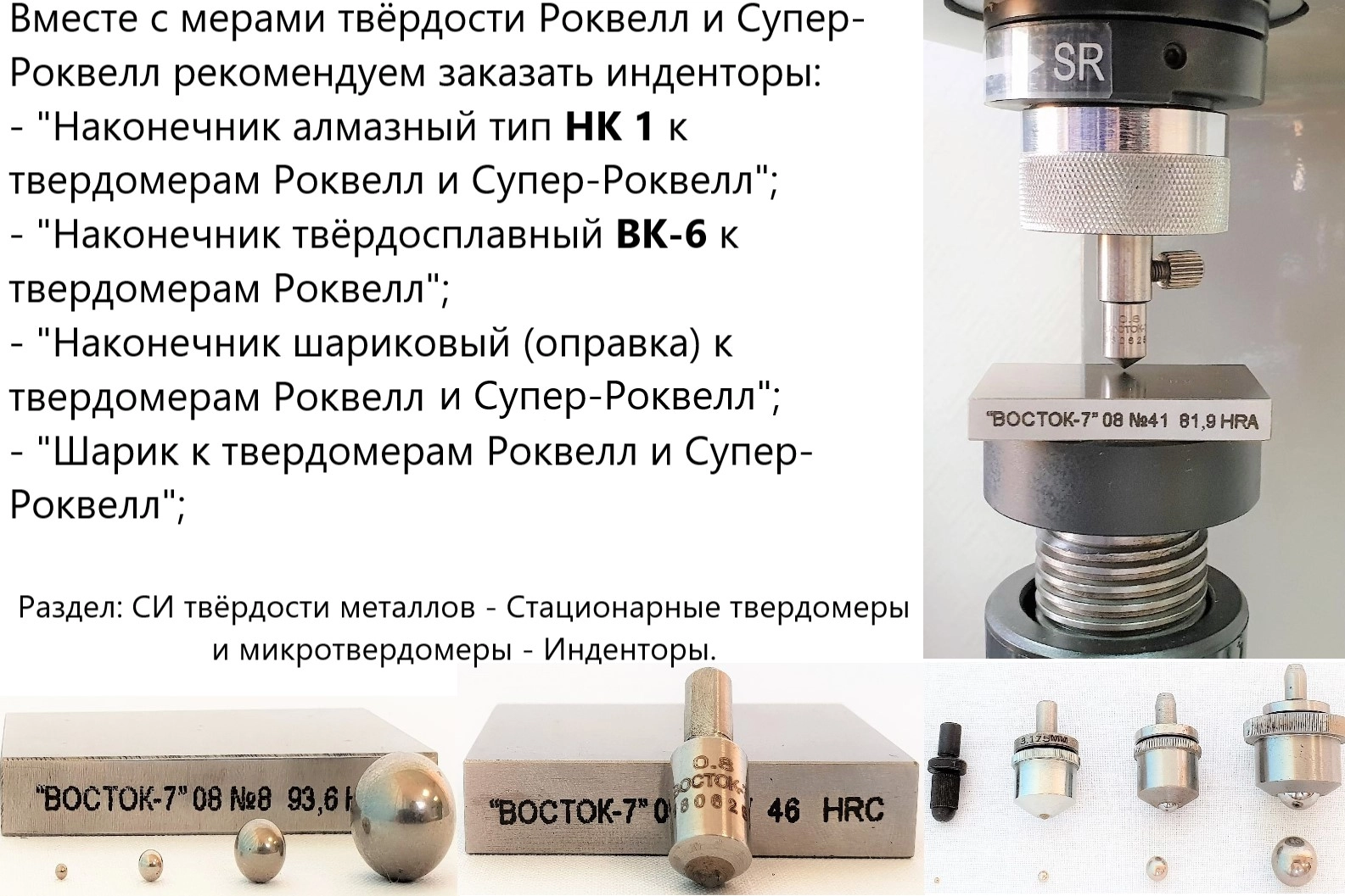 Меры твёрдости Роквелла МТР реализуются поштучно и комплектами из 5 шт. следующих модификаций: