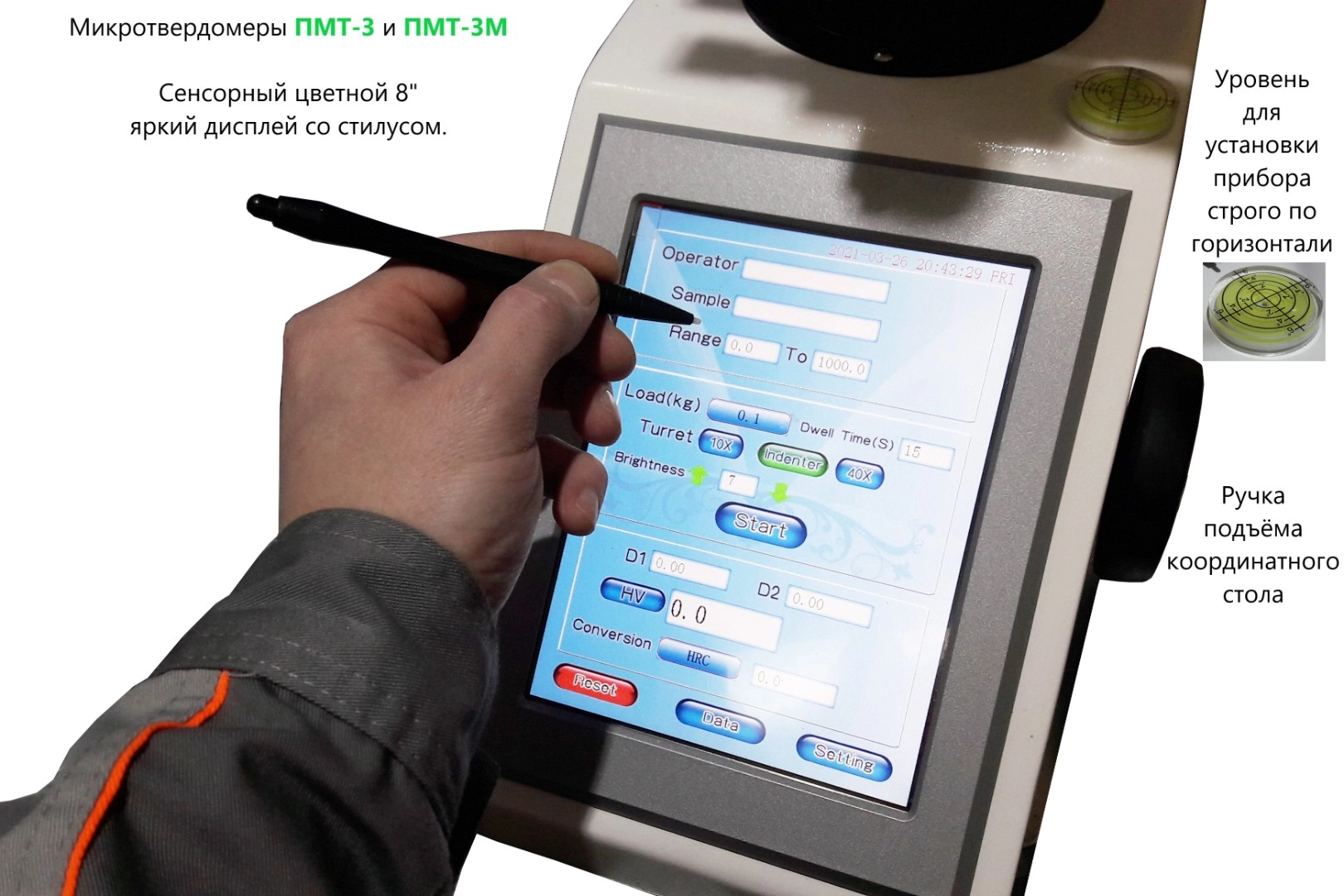 Принцип действия микротвердомеров основан на статическом вдавливании алмазного пирамидального индентора с последующим измерением длин диагоналей восстановленного отпечатка. Микротвердомеры состоят из силовой рамы, на которой установлены механизм приложения нагрузки, сенсорный экран и оптическая система. Микротвердомеры выпускаются в двух исполнениях ПМТ-3, ПМТ-3М и отличаются степенью автоматизации процесса испытаний и разрешением оптической системы.