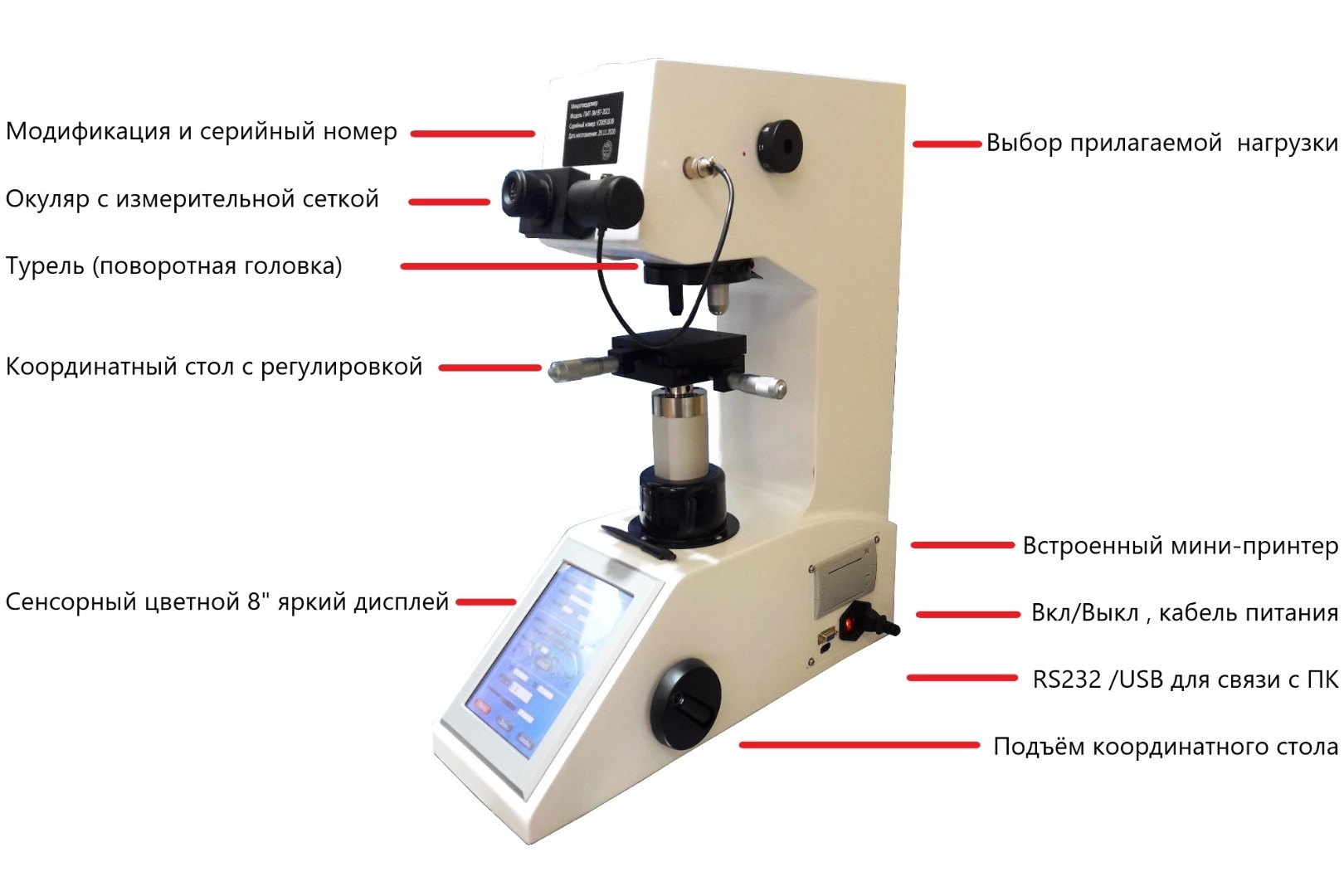 Микротвердомеры Виккерса (далее – микротвердомеры) предназначены для измерений твёрдости металлических и неметаллических материалов по шкалам Микро Виккерса в соответствии с ГОСТ Р ИСО 6507-1-2007 и ГОСТ 2999-75. Приборы осуществляют т. н. "прямое" измерение твёрдости по методу Виккерса и Кнупа (доп. опция) путём непосредственного нагружения (терминология по ГОСТ 8.063-2012), а также позволяют измеренные результаты "переводить/конвертировать/пересчитывать" в шкалы Роквелла, Супер-Роквелла, Бринелля, Виккерса (из Кнупа) и Кнупа (из Виккерса) - т. н. "косвенное" определение твёрдости, корреляция по стандарту ASTM E-140.