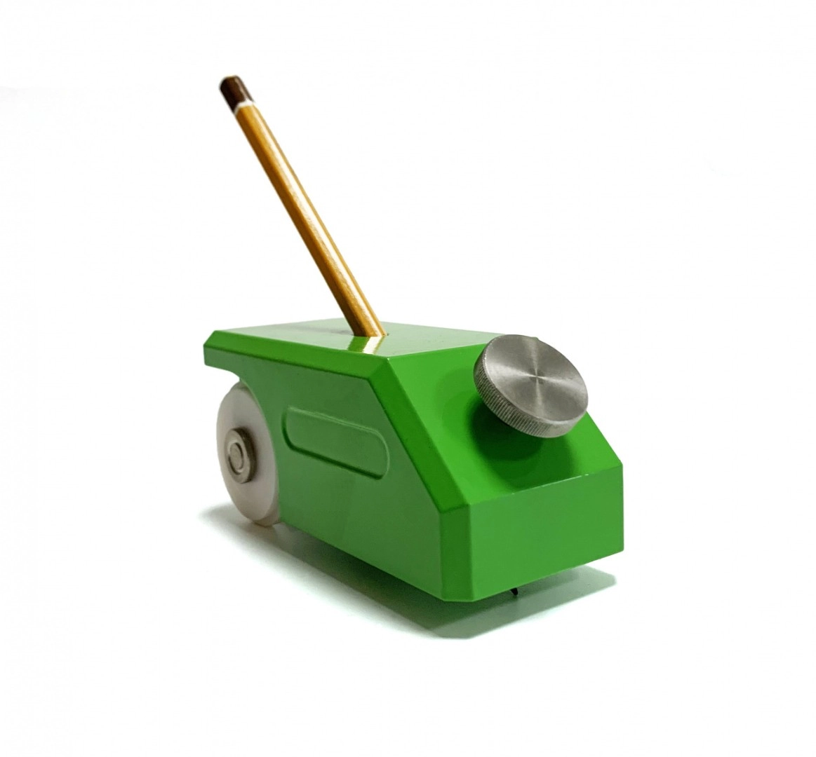 Твердомер изготавливается из металла и сконструирован таким образом, чтобы при правильной установке карандаша обеспечивал угол его наклона к поверхности в 45°±1° и нагрузку кончика грифеля на покрытие равную 750±10 г. Применение специальной подставки, идущей в комплекте с твердомером обеспечивает простую и корректную установку карандаша и позволяет обойтись без применения уровня. На боковых гранях твердомера сделаны выборки под пальцы облегчающие его использование. Устройство является испытательным оборудованием и не подлежит внесению в ГОСРЕЕСТР СИ РФ.
