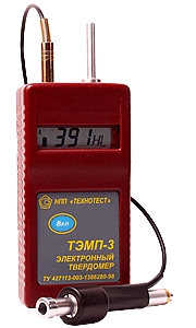 Твердомер ТЭМП-3 предназначен для экспрессного измерения твердости различных изделий (из стали, чугуна, цветных металлов, резины и др. материалов) в производственных и лабораторных условиях. Результат измерений выводится на индикатор в условных единицах (HL), переводимых в числа твердости (НВ, HRC, HV, HSD) с помощью переводных таблиц, поставляемых вместе с твердомером.