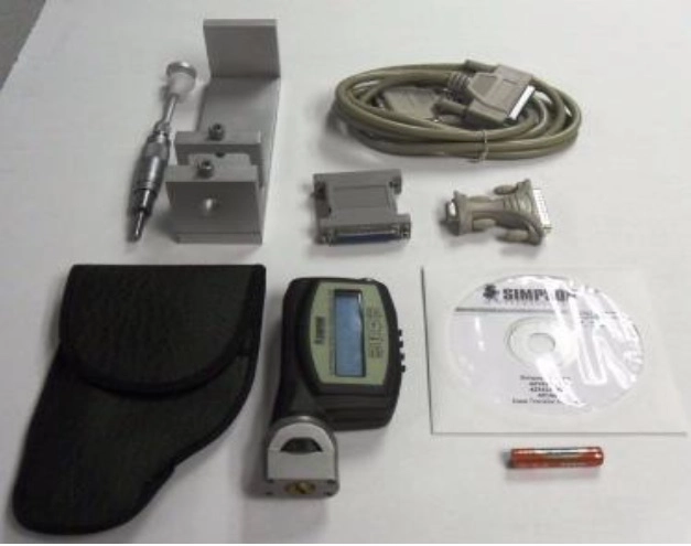 Электронный твердомер Simpson (модель 42145) определяет твёрдость формы или стержня по Мартенсу. Прибор имеет в своем составе четырёх-точечный резец, который, вращаясь, царапает поверхность обработанного начисто стержня или формы. Глубина проникновения резца в образец характеризует твердость стержня или формы. Современная электронная элементная база повышает точность прибора. Электронный твердомер мало весит, портативен и специально разработан для использования на литейных производствах.