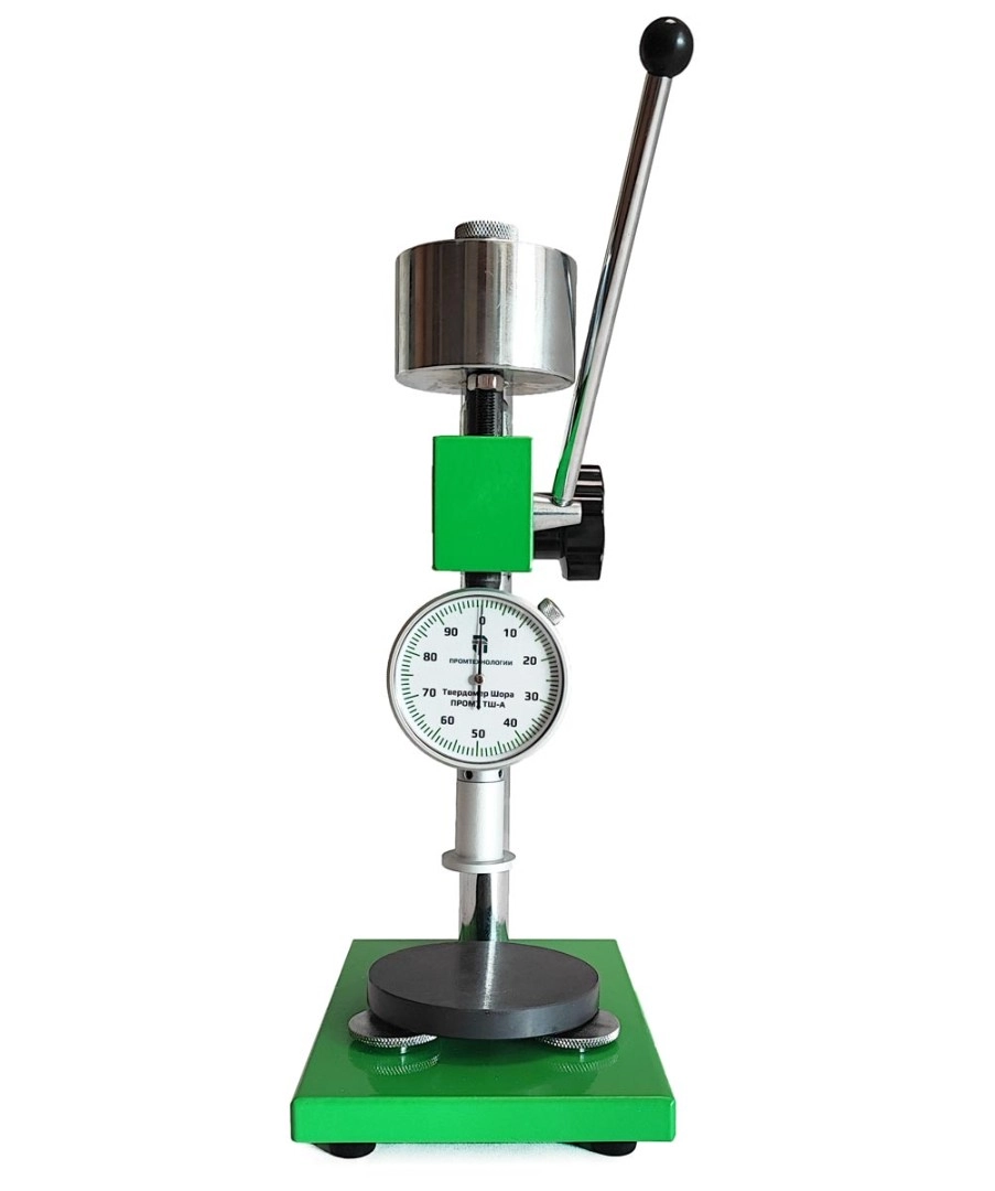 Твердомер по Шору (дюрометр) ПРОМТ ТШ-А (тип АО/С) используется для контроля твердости при вдавливании объектов с низкой твердостью (мягкой резины, пенополистирола, иных мягких, микропористых и аналогичных материалов) по методу Шора в соответствии с ГОСТ Р ИСО 7619-1-2009 и ISO 7619-1. В зарубежных странах аналогичный прибор также может иметь обозначение «тип С» (встречается еще ASKER-C или ASK-C) в соответствии с японскими стандартами JIS K 7312 и JIS S 6050, тогда как указанные выше российский ГОСТ и международный ISO под типом С предусматривают дюрометр с иными характеристиками. В основу метода положено определение глубины вдавливания индентора определенной формы под воздействием заданной силы в течение необходимого времени. За результат измерения принимается значение твердости в единицах Шора АО/С (HAО) в диапазоне от 0 до 100 отображаемое на индикаторе часового типа. Температура воздуха и материала является важным параметром при проведении испытания и определяется ГОСТ либо нормативными документами на объект испытания. Относительная влажность также может влиять на твердость некоторых материалов.