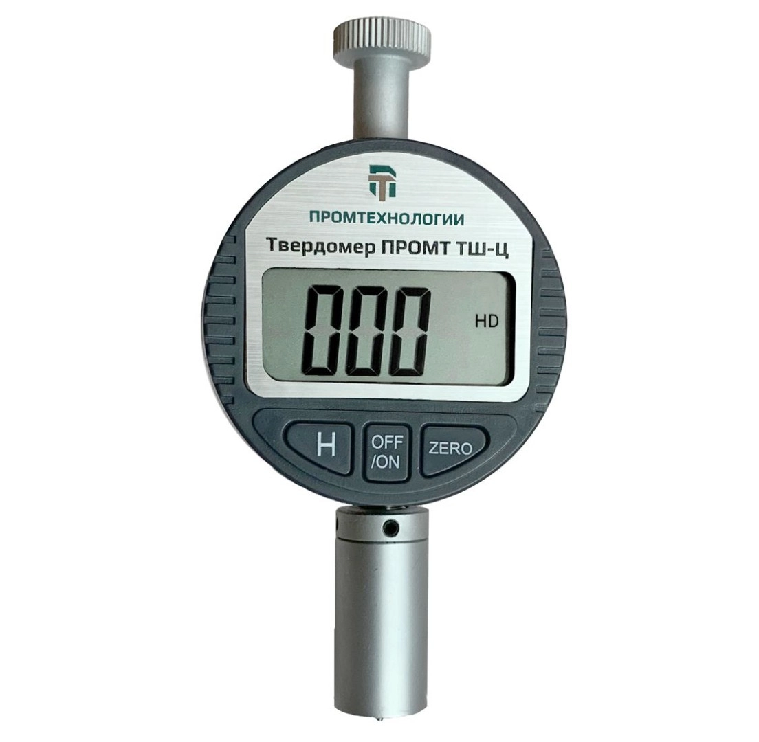 Это простой и надежный цифровой прибор из ударопрочного ABC пластика с LCD дисплеем, кнопками установки нуля и фиксации полученного значения, а также удлиненной контактной площадкой облегчающей применение дюрометра. Внутри устройства установлена тарированная пружина обеспечивающая требуемое усилие на индентор специальной формы из закаленной стали и механизм фиксации его перемещения. Для проведения измерения в соответствии с ГОСТ может потребоваться секундомер и термометр. Твердомер Шора ПРОМТ ТШ-Ц (тип D) не требует специальных навыков для работы с ним и позволяет оперативно контролировать твердость жесткой резины, пластиков, эбонита, смолы и аналогичных материалов в лабораторных и цеховых условиях.