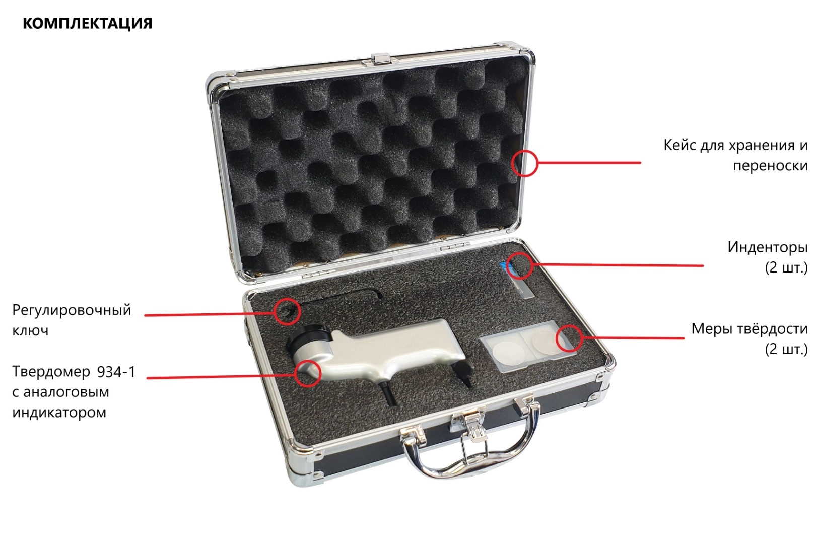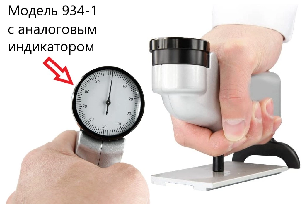 934-1 с аналоговым индикатором. Удобный и лёгкий в использовании прибор разработан для оценки твёрдости различных материалов, включая пластики, полиэфиры, стеклопластики, кожу и мягкие металлы в соответствии с американскими стандартами и российским ГОСТ Р 56761-2015.