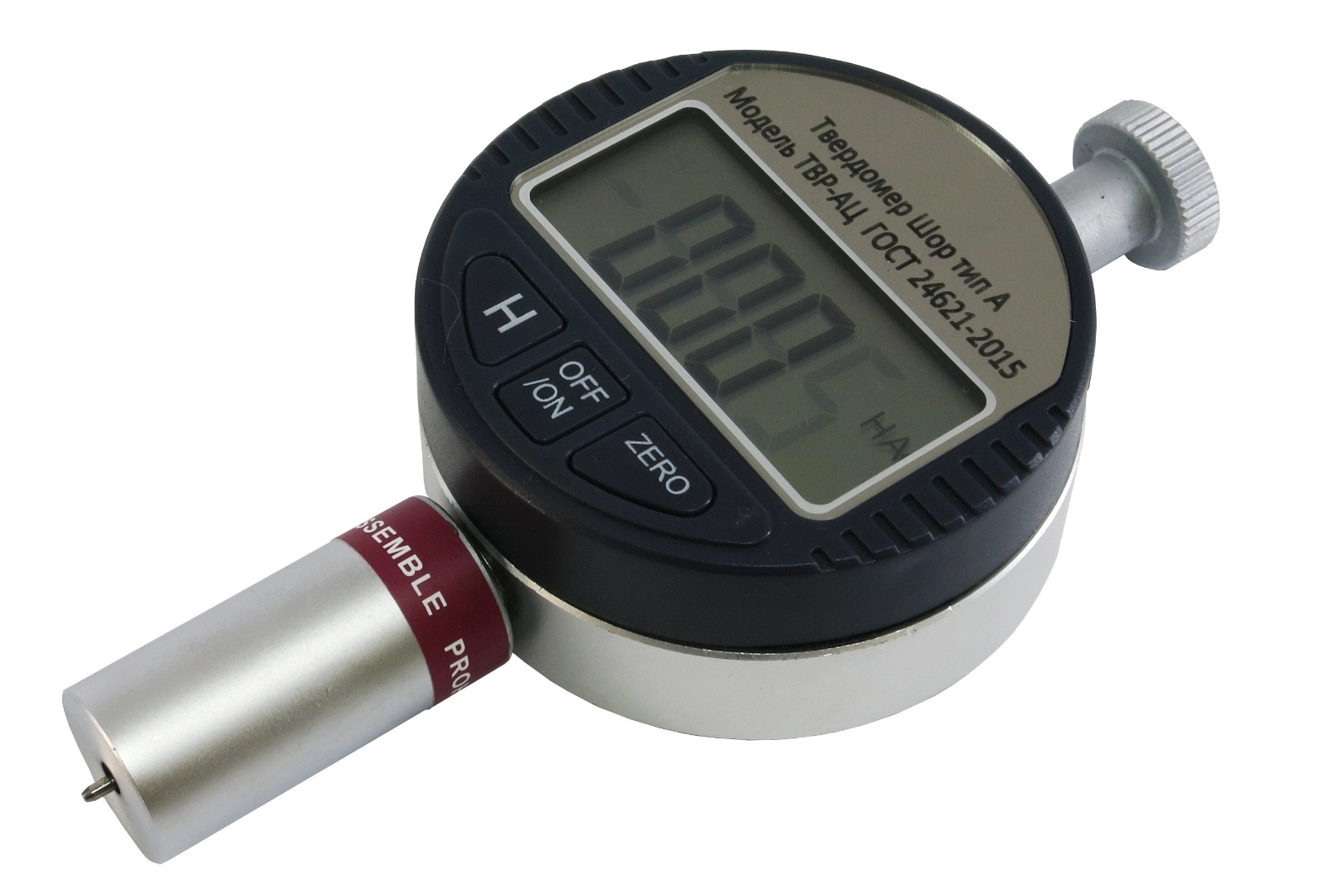 ТВР-АЦ твердомер (дюрометр) Шора тип А с цифровым индикатором предназначен для измерения твёрдости по шкале Шора тип А резины в соответствии с ГОСТ 263-75 и мягких пластмасс в соответствии с ГОСТ 24621-2015 (ISO 868-2003), в т.ч. мягких полиуретанов: эластомера, ПВХ, силикона, продуктов из натурального каучука, неопрена, смолы, полиэстера, кожи, полиграфических валков и т.п.