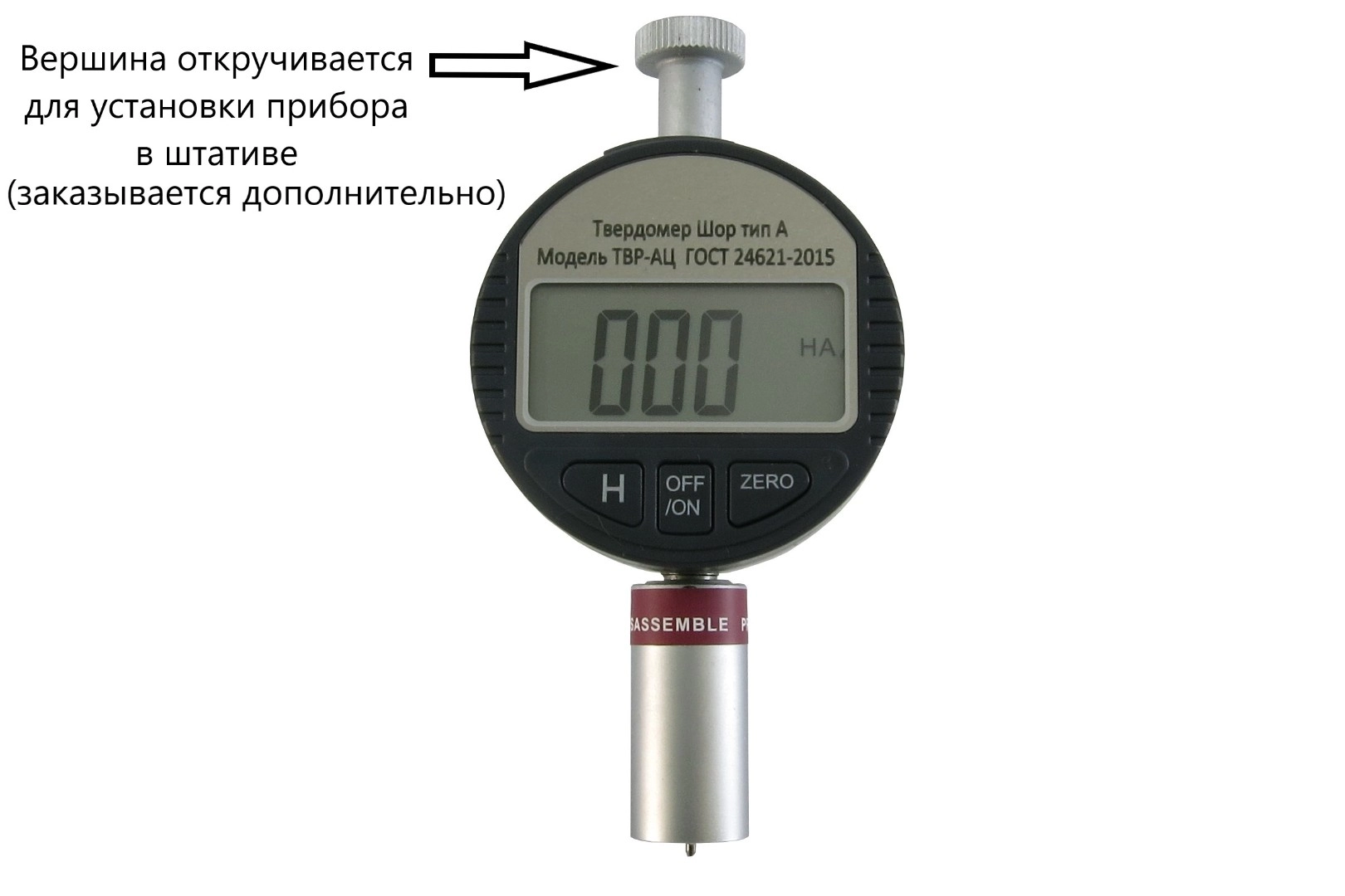 ТВР-АЦМ твердомер (дюрометр) Шора тип А с цифровым индикатором - это механизированная модель, представляющая из себя механический штатив с установленным в нём дюрометром ТВР-АЦ. Штатив может быть приобретён совместно с прибором ТВР-АЦ, либо приобретён позднее при необходимости.