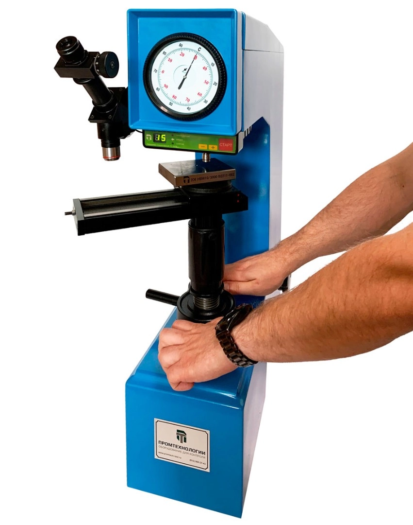 Твердомер стационарный Бринелля, Роквелла и Виккерса NOVOTEST ТС-БРВ это многофункциональный прибор для измерения твердости классическим методом по шкалам Бринелля, Роквелла и Виккерса с возможностью использования 7 ступеней нагрузки. Прибор автоматически производит нагрузку, снятие нагрузки и прекращение нагружения, поэтому работа с прибором является простой, легкой и быстрой. Благодаря встроенному микроскопу с микрометром, твердомер стационарный Бринелля, Роквелла и Виккерса ТС-БРВ имеет высокую степень чувствительности и точности, что делает возможным его использование в лабораториях.