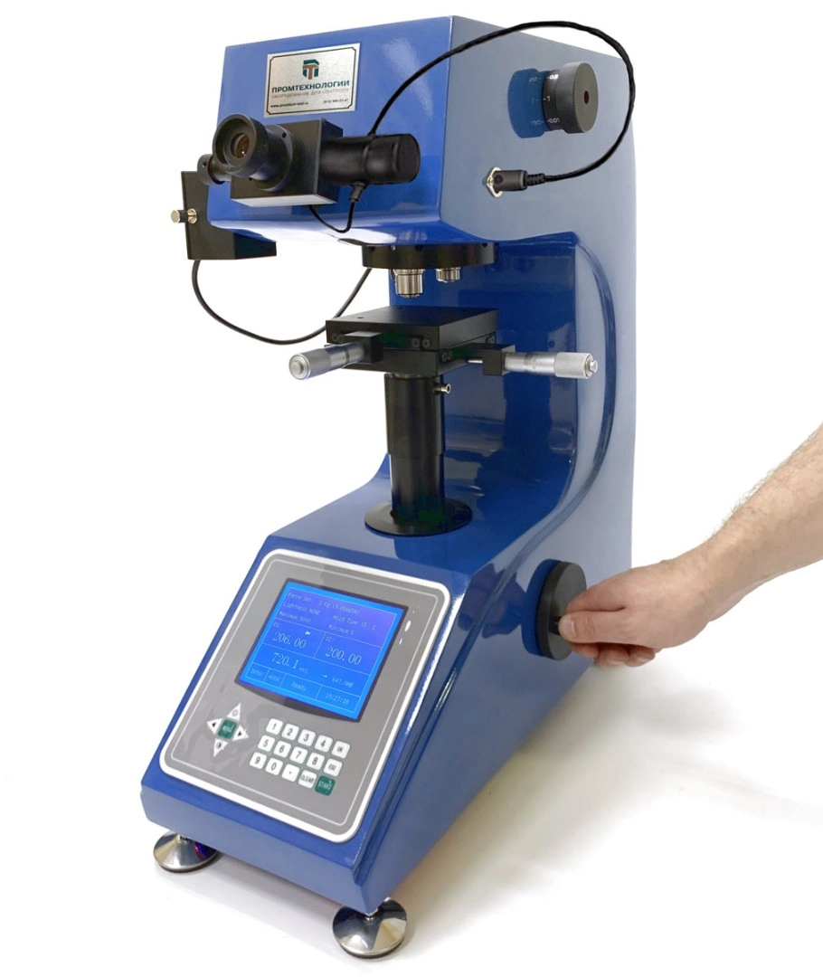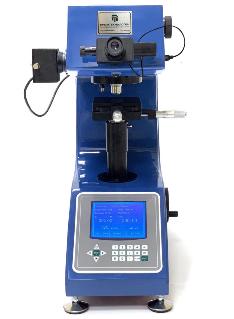 Твердомер применяет автоматизированные системы передачи сведений о размерах отпечатков, управления приложением и снятием нагрузки, максимально упрощая пользователю применение прибора, повышая производительность и точность измерений. Результат измерения отображаемый на экране рассчитывается автоматически, есть функция пересчета в иные шкалы. Электронное управление, большой диапазон выбора нагрузок и времени приложения, а также сигнализация о выходе за установленные пороговые уровни делают этот прибор незаменимым устройством для определения твердости по методу Виккерса когда речь идет о небольших или тонких объектах.
