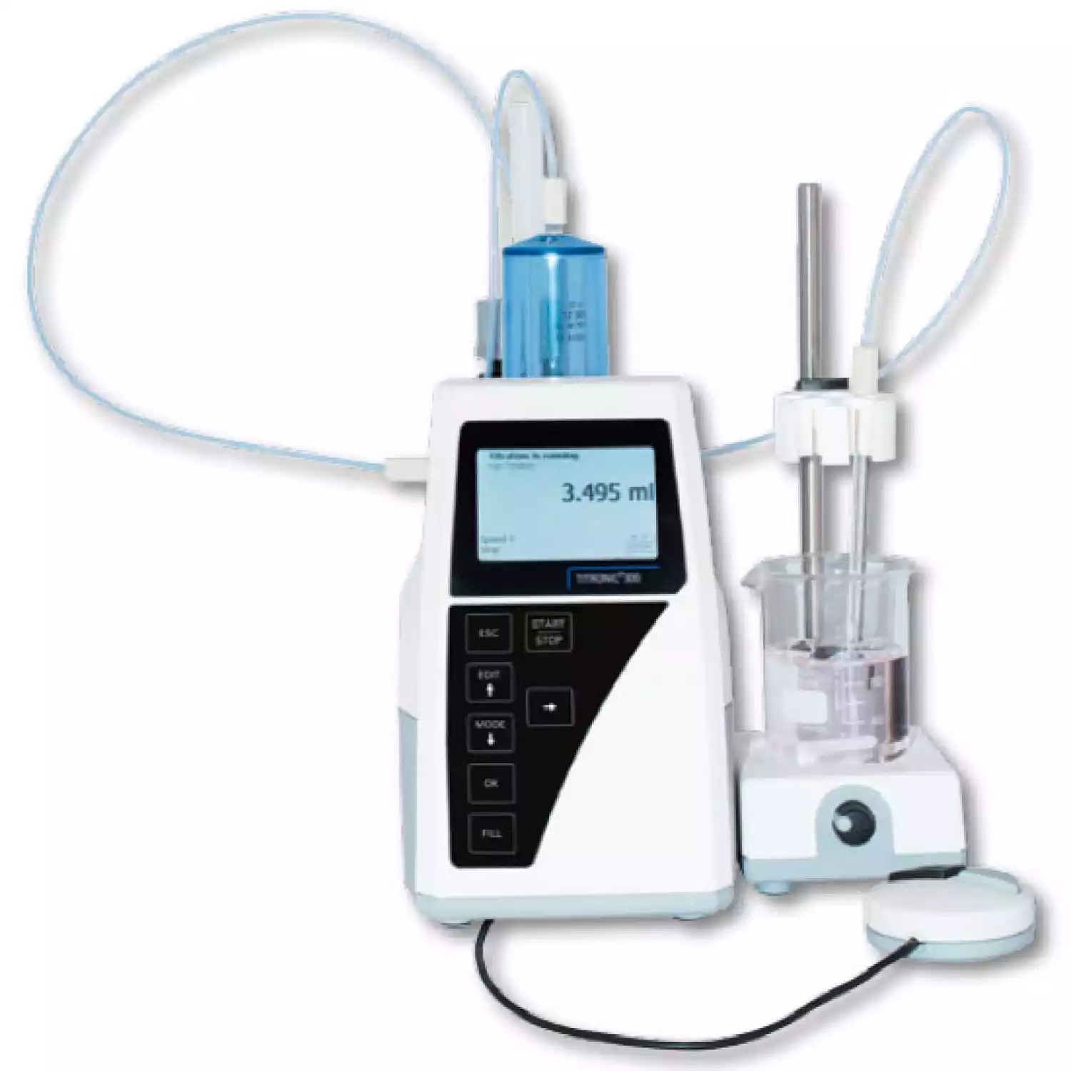 TITRONIC 300 идеальная бюретка с моторным приводом для ручного титрования и точного дозирования жидкостей, растворителей и титрующих агентов. Бюректи TITRONIC 300 являются не только автономными устройствами, но также могут быть объединены в сеть под управлением компьютера (до 16 устройств могут быть подключены одно за другим).