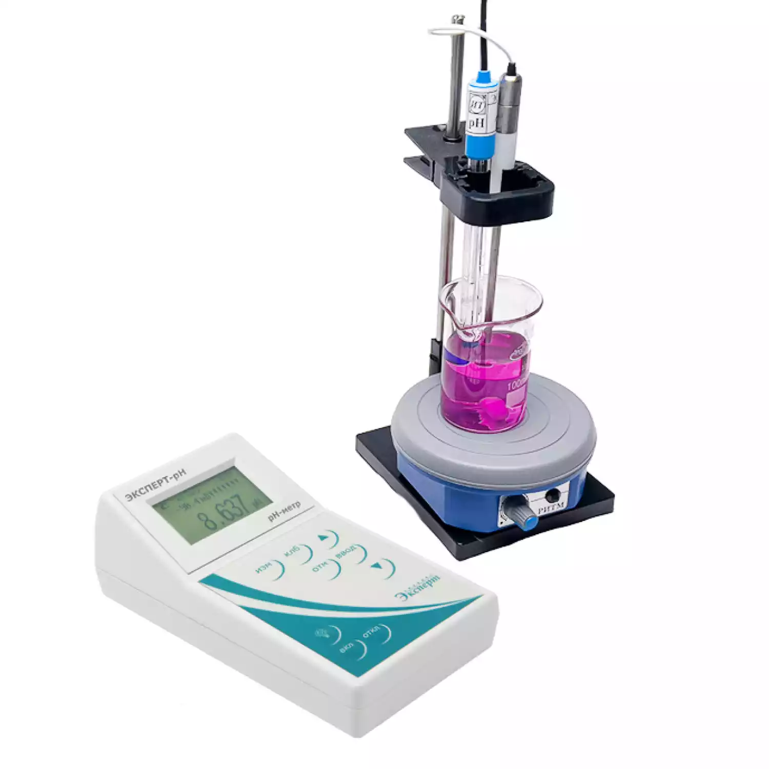 Эксперт-pH (профессиональный комплект) общелабораторный рН/мВ/ºС метр для широкого круга применения с комбинированным стеклянным электродом, штативом и магнитной мешалкой (кейс для переноски по заявке).