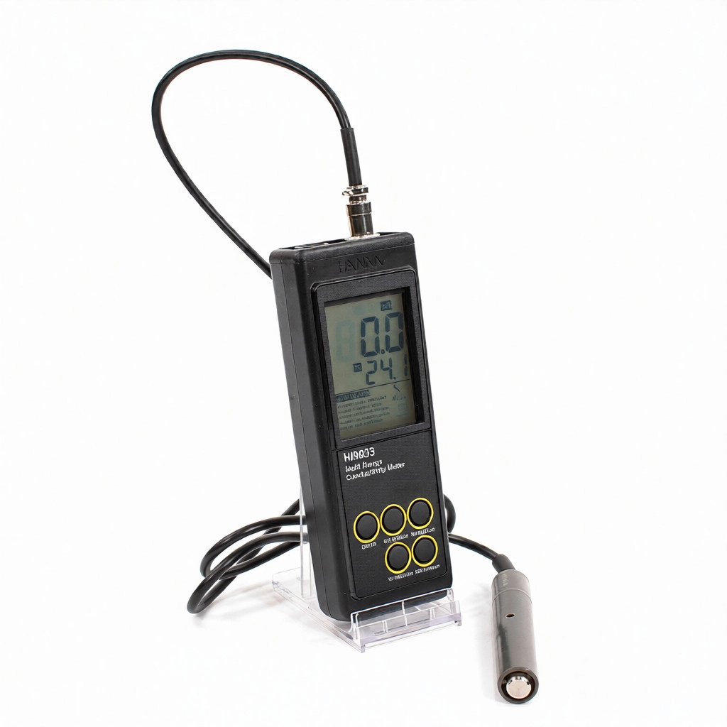 Кондуктометр многодиапазонный HI 9033 портативный измеритель электрической проводимости может использоваться в различных областях. В приборе предусмотрено четыре диапазона измерений от 0,0 мкСм/см до 199,9 мСм/см с точностью ± 1% полной шкалы измерений. Входящий в комплект прибора четырёхэлектродный датчик проводимости HI76302W позволяет проводить измерения в широком диапазоне концентраций с помощью одного датчика. При этом, четырёхэлектродная технология устраняет эффект поляризации, являющейся общей проблемой стандартных датчиков с двумя электродами-полюсами. Кроме того, для обеспечения автоматической температурной компенсации в диапазоне от 0 до 50 ° C (от 32 до 122 ° F), в датчик измерения проводимости встроен датчик измерения температуры.