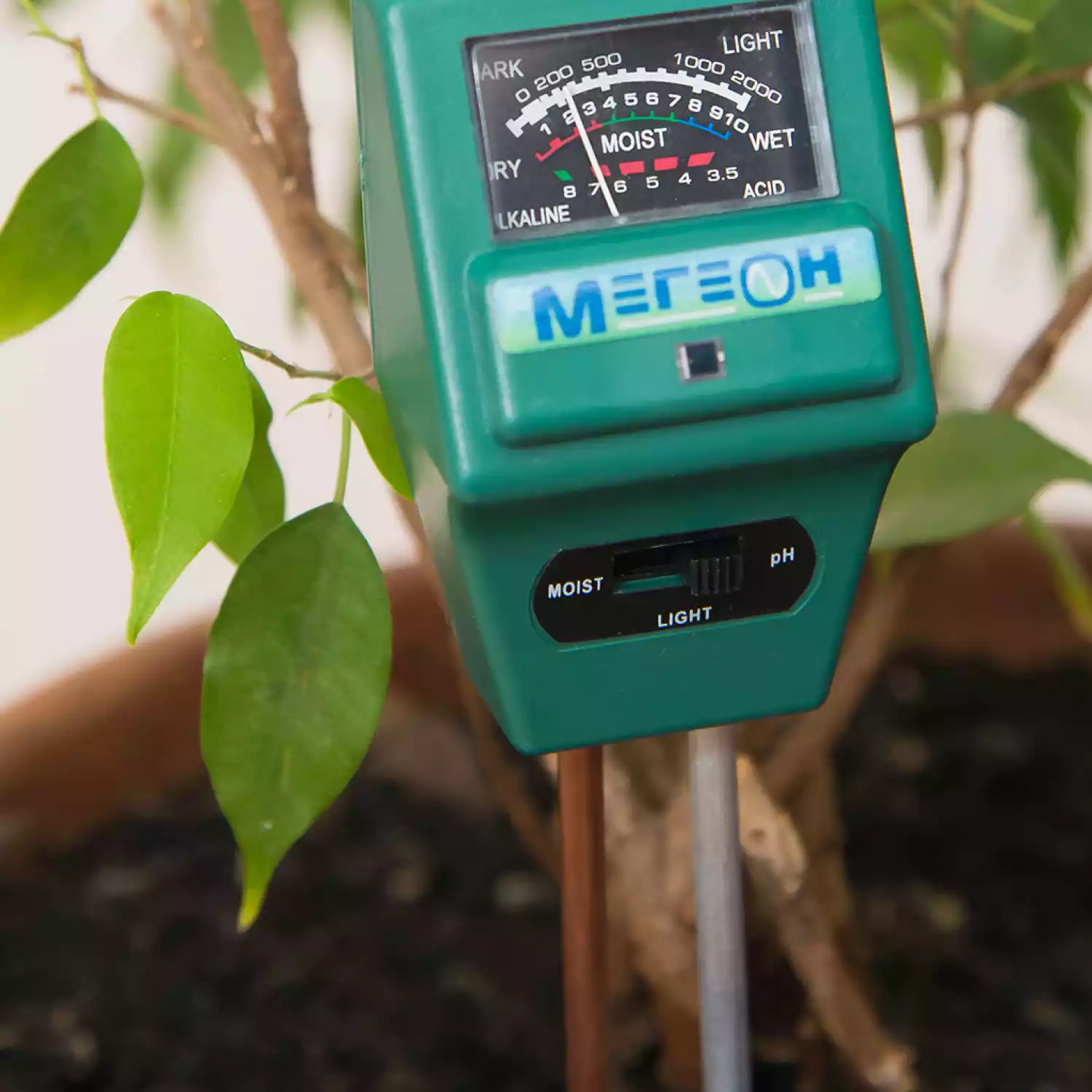 Измеритель кислотности Мегеон 35280 новинка, разработанная компанией Мегеон. Данный измерительный прибор используется для точного определения уровня кислотности жидкостей, грунта или почвы. Имеется функция измерения освещенности и показателей влажности почвы. Мегеон 35280 отлично подойдет специалистам, чья профессиональная деятельность тесно связана с озеленением и выращиванием растений.