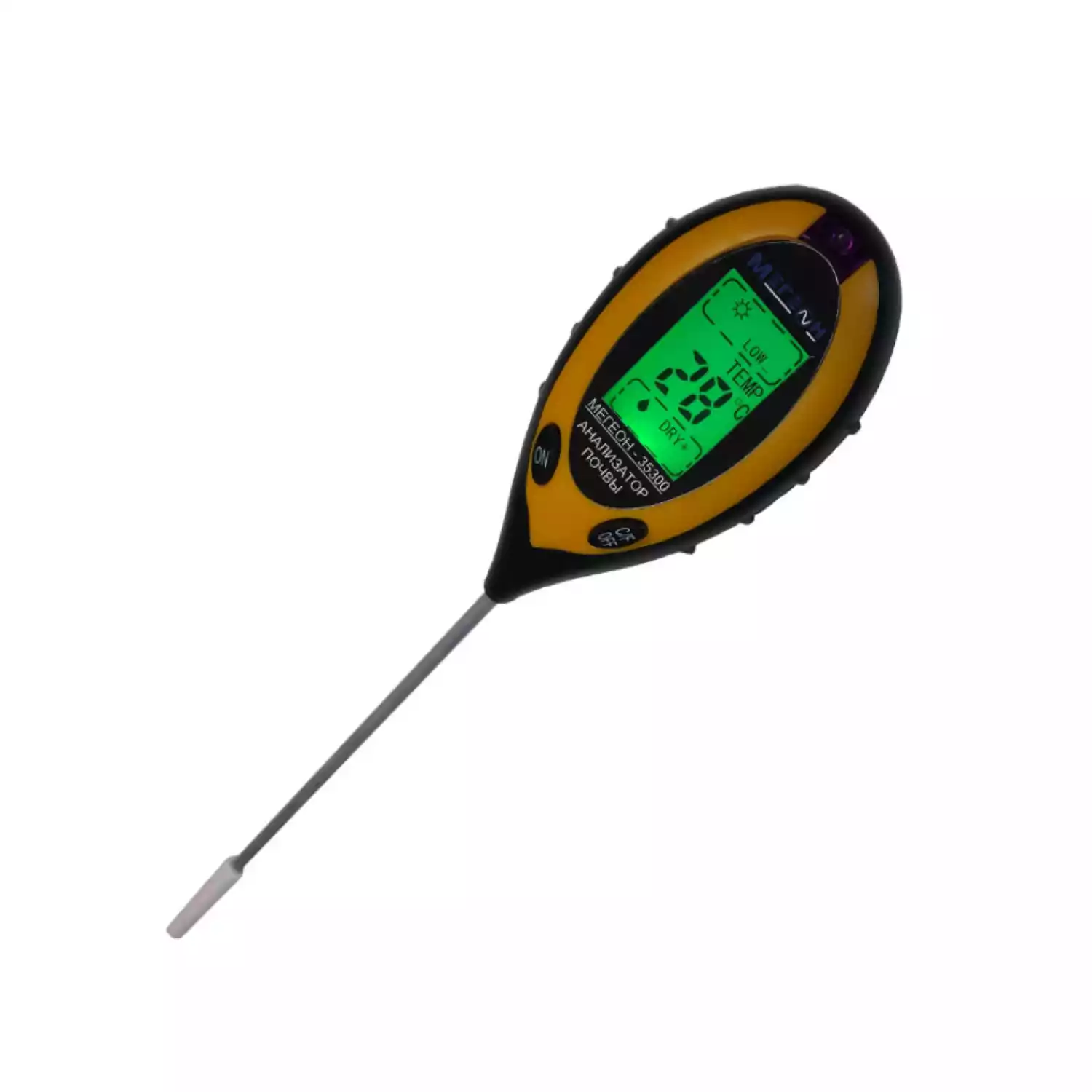 Используя Мегеон 35300, Вам больше не потребуется измерять уровень pH при помощи лакмусовых бумажек. Полученные результаты измерений выводятся на ЖК-дисплей прибора. Достаточно погрузить измерительный зонд в исследуемый грунт вблизи растения. Кроме уровня кислотности почвы, данный измеритель измеряет температуру и влажность почвы, а встроенный датчик освещенности постоянно информирует пользователя об уровне интенсивности солнечного света. Большой ЖК-дисплей со встроенной подсветкой позволяет пользоваться прибором даже в условиях плохой освещенности.