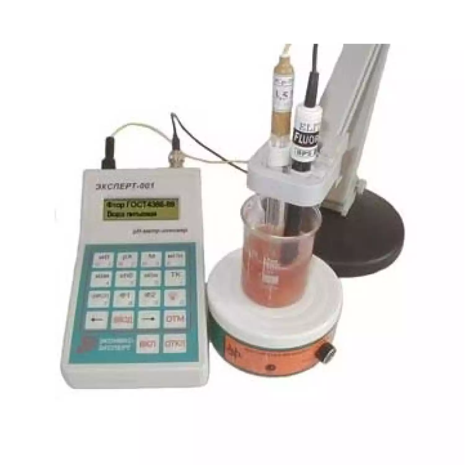 Измерительный блок комплекта МИКОН-2 состоит из модифицированного иономера Эксперт-001 и ионоселективного электрода серии ЭЛИТ в паре со вспомогательным электродом.