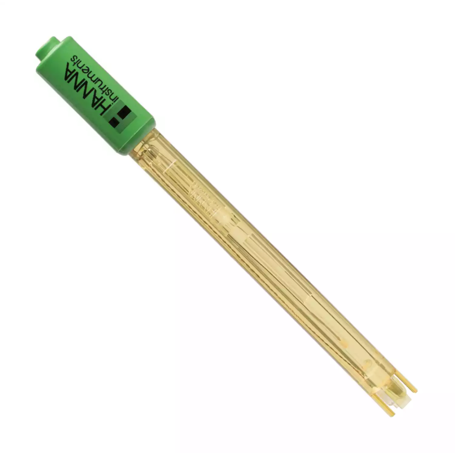 pH-электрод HI 12303 представляет собой корпус из полиэфиримида (PEI), pH-электрод с двойным спаем, со встроенным датчиком температуры и подключается к измерителю, имеющему разъем Quick Connect DIN. Этот тип разъема является запатентованным для конкретных измерителей, таких как HI98190. pH-электрод HI12303 имеет один керамический спай во внешней эталонной ячейке, а сферическая pH-чувствительная часть выполнена из стекла общего назначения и защищена ребрами прочного корпуса из PEI. Такая конструкция обеспечивает превосходные результаты при измерениях с помощью портативных измерительных приборов благодаря долговечности и тому, что зонд не требует обслуживания, кроме очистки и калибровки.
