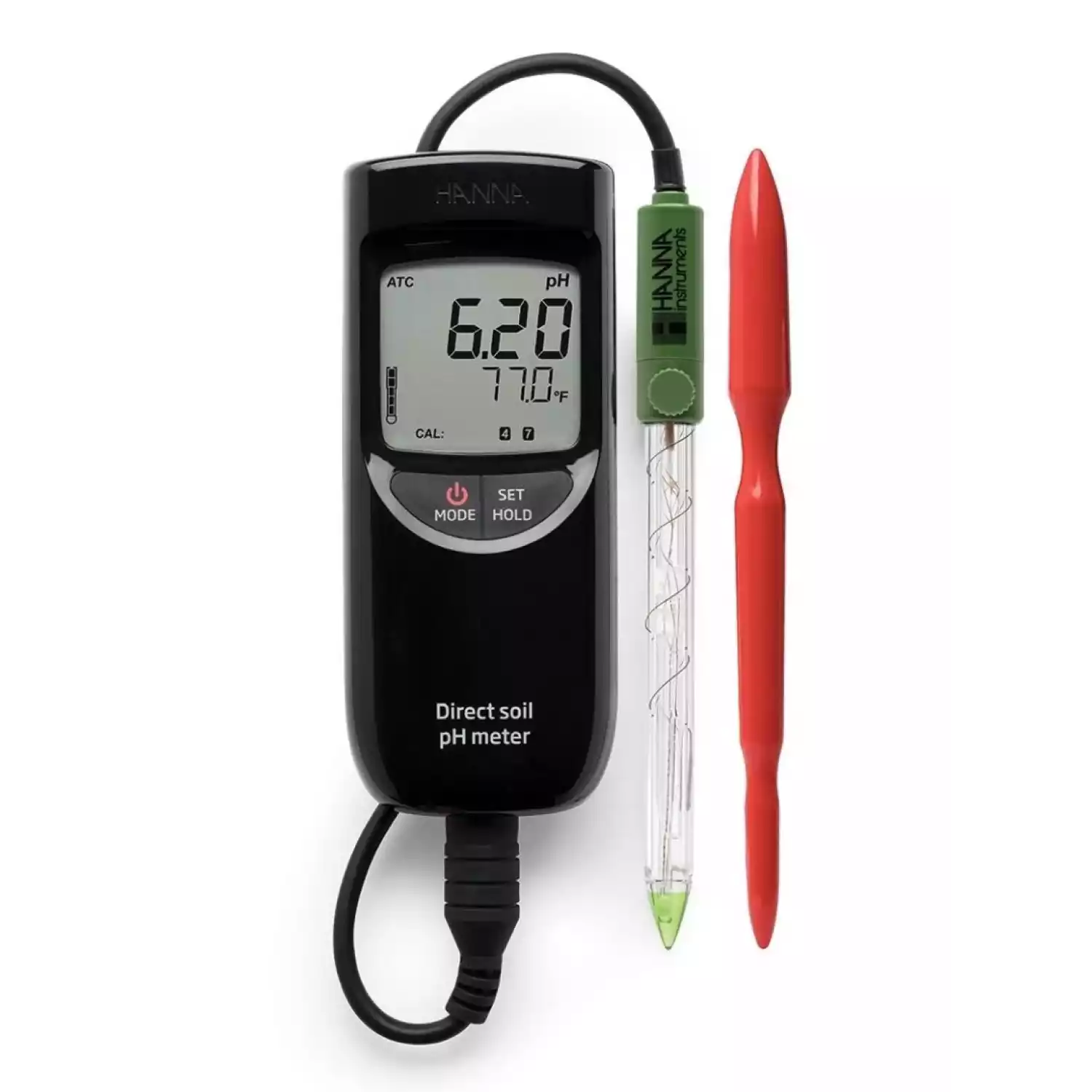 рН-метр HI99121 является идеальным портативным рН метром для тестирования почвы. В HI99121 используется погружаемый непосредственно в почву рН электрод с усилением сигнала HI1292D с одновременным измерением температуры, которым пользователи могут измерять рН почвы как непосредственно, так и после приготовления суспензии почвы в деионизированной воде. Электрод HI1292D характеризуется наличием прочного конического наконечника, который можно непосредственно погружать во влажную или мягкую почву. Для работы с более твердыми почвами, в комплекте прилагается пластиковый бур для пробивания отверстий в земле.