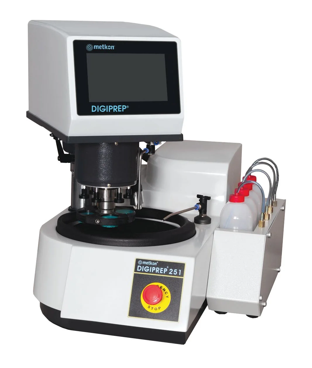 Программируемый шлифовально-полировальный станок с 6″ экраном с сенсорным управлением, большим двигателем 1.0 л.с. (0.75 кВт), регулируемая скорость вращения диска в диапазоне 50-600 об/мин, бесшумный ременный привод, направление вращения по- или против часовой стрелки, мягкий запуск и остановка, рабочий комплект, состоящий из алюминиевого круга диам. 300 мм и брызгозащитного кольца, вытягиваемый шланг, трубки для подвода и слива воды. Автоматическая головка, большой ЖК-экран, программирование параметров подготовки образца, центральное и/ или индивидуальное усилие, стальная монтажная стойка, вращение держателя образца с регулируемой скоростью 50-150 об/мин, двигатель постоянного тока мощностью 100 Вт, светодиодное освещение, снятие материала по оси Z с контролем глубины, конструкция с возможностью быстрого поворота и фиксации, предупреждающий звуковой сигнал, зажимной патрон-держатель, встроенное устройство смазки диспенсер Lubomatic с перистальтическим насосом и регулировочным расходным клапаном.