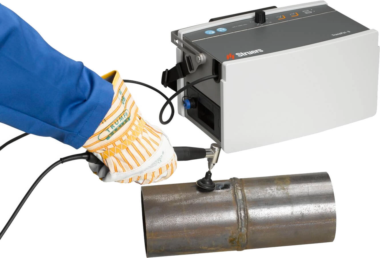 Комплекс портативного оборудования для неразрушающей подготовки Transpol-5 предназначен для работы в полевых условиях. В состав комплекса входят: портативный шлифовально-полировальный станок, портативное устройство для электролитического полирования и травления, портативный микроскоп. Данное оборудование является компактным и имеет небольшой вес. Оно легко транспортируется и может применяться практически в любых условиях.