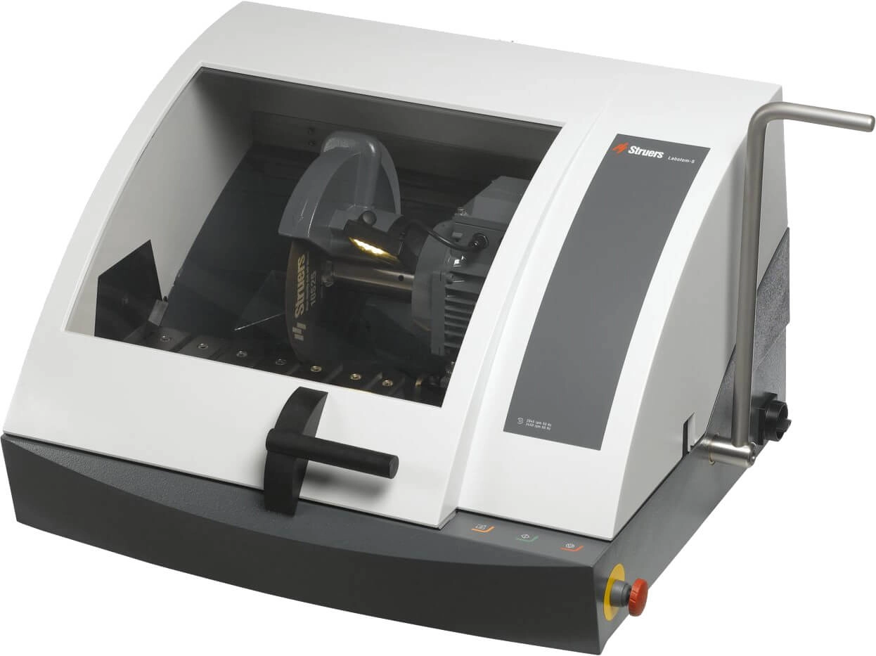 Ручной отрезной станок Labotom для резки материалографических образцов. Надежная конструкция, большой отрезной стол, просторная отрезная камера, мощный двигатель и эффективное охлаждение позволяют производить быстрое и точное отрезание образцов в лаборатории или на производстве.