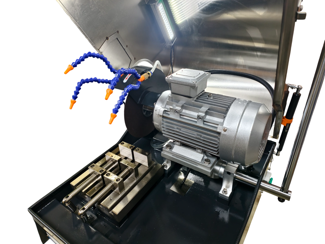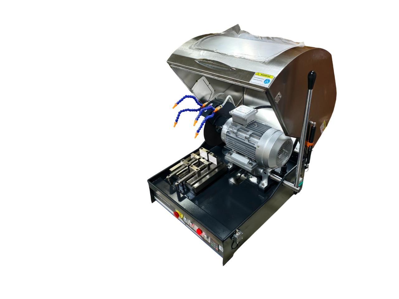 Станок предназначен для резки различных металлических или неметаллических образцов (возможность выбора различных отрезных дисков в зависимости от материала), для последующего анализа структуры среза. Встроенная система охлаждения предотвращает изменение структуры образца из-за перегревания во время процесса резания. Машина отличается высокой производительностью, низким уровнем шума и качественным срезом образца. Машина имеет приятный внешний вид, безопасна и надежна в работе. Данная отрезная машина - идеальный выбор для металлографической подготовки образцов в колледжах, заводских и фабричных лабораториях, исследовательских центрах.