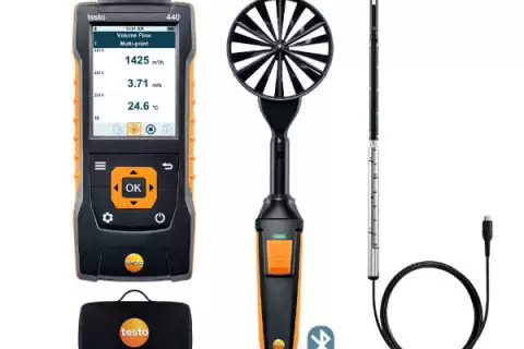 Новая модель анемометра, testo 417-2, оснащена выносной крыльчаткой (Ø 100 мм) с кабелем длиной 1.5 м, что обеспечивает еще большую гибкость при проведении измерений, в том числе в труднодоступных местах.
