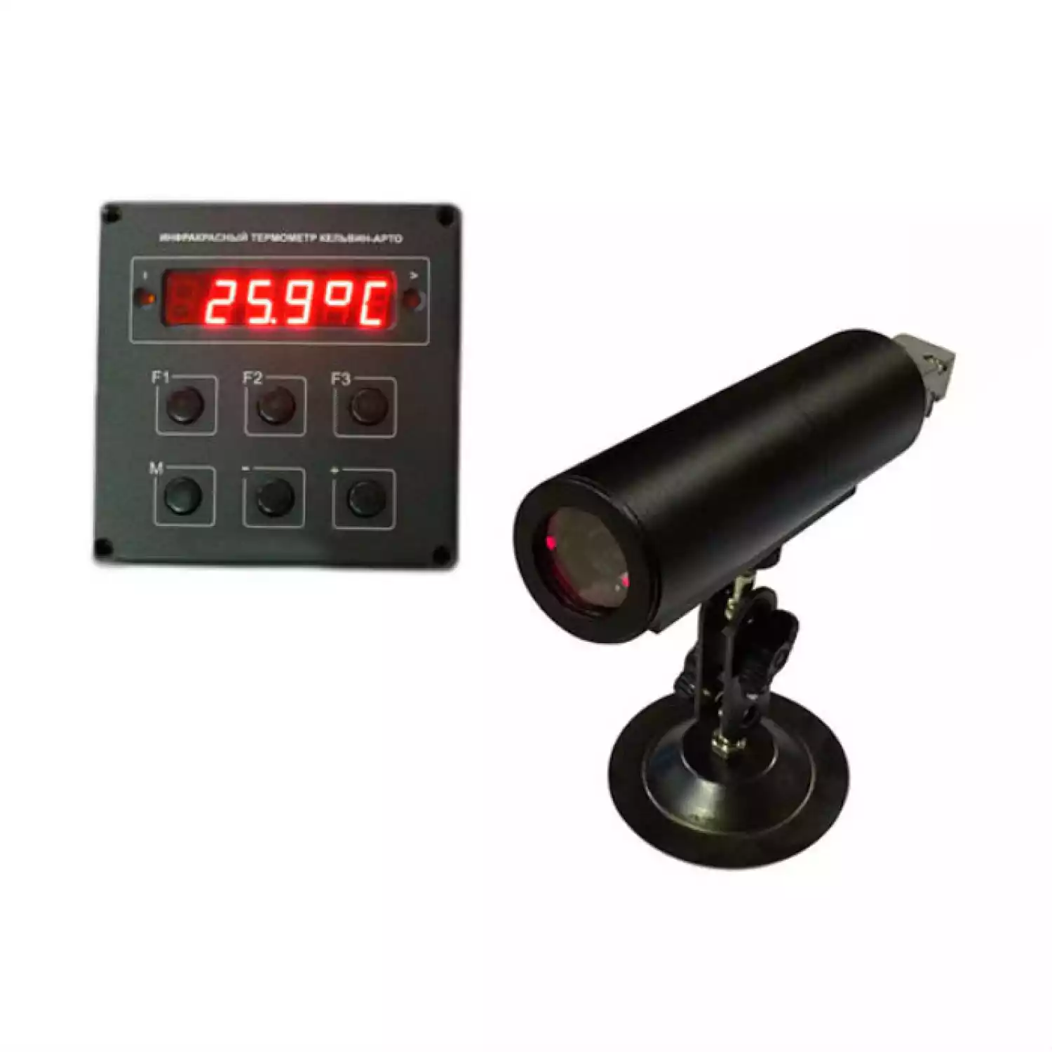 ИК-пирометр Кельвин-АРТО является стационарным измерителем температуры для промышленного применения в прочном металлическом корпусе. Имеет двухблочное исполнение: пульт управления, ИК-датчик, соединительный кабель 3 м, выход RS 232, токовый выход, установка коэффициента излучения, установка порога, контакты реле для управления исполнительными устройствами.