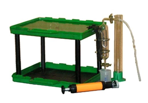 Вода в уравнительный сосуд в количестве, необходимом для уравновешивания создаваемого аспиратором разрежения, перетекает из специального резервуара, входящего в комплектность поставки. Объем воды и является мерой объема прокачиваемого воздуха.