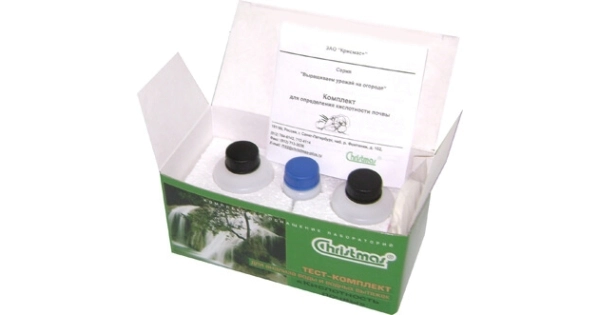 Тест-комплект «Кислотность почвы», разработанный и производимый ЗАО «Крисмас+», широко и успешно применяется при экспресс-определении кислотности обменной в солевой вытяжке из почв при проведении почвенного, агрохимического, мелиоративного обследования угодий, контроля за состоянием солевого режима почв, а также при других изыскательских и исследовательских работах.