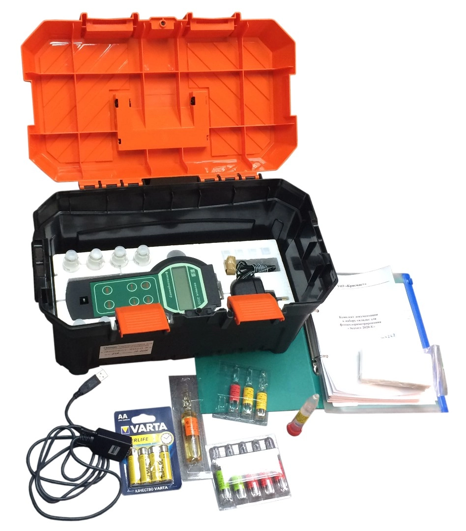Фотоколориметрирование проб выполняется с применением фотоколориметра «Экотест-2020К» с набором кювет (поставляется в укладке для фотоколориметрирования).