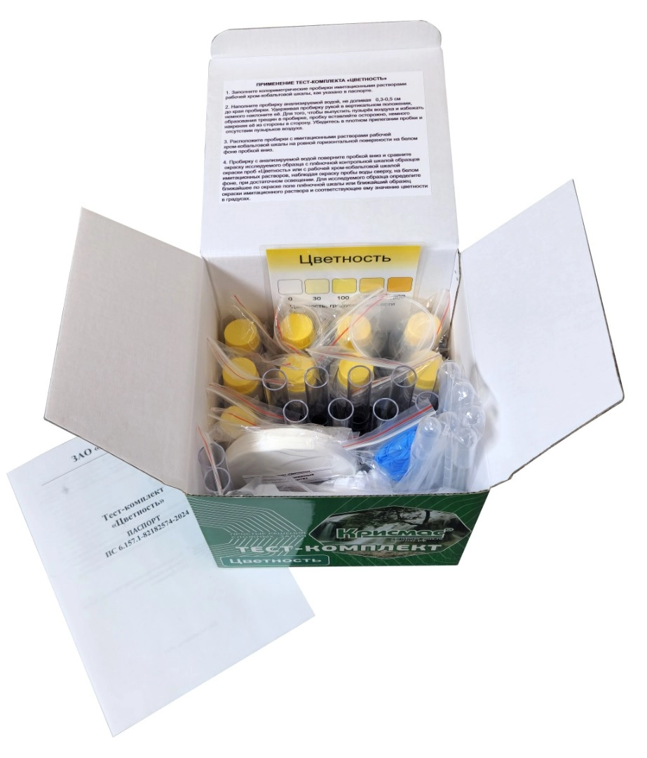 Тест-комплект максимально прост и удобен в использовании, позволяет при минимальных затратах осуществлять экспресс-определения цветности питьевой, природной и сточной воды.