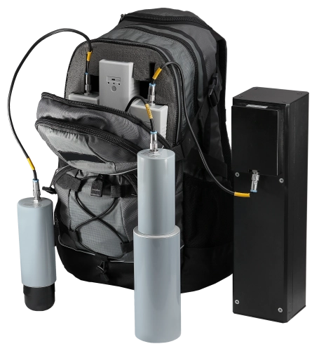 Спектрометр может размещаться в рюкзаке (базовая версия) или в герметичном ударопрочном кейсе (по заказу).