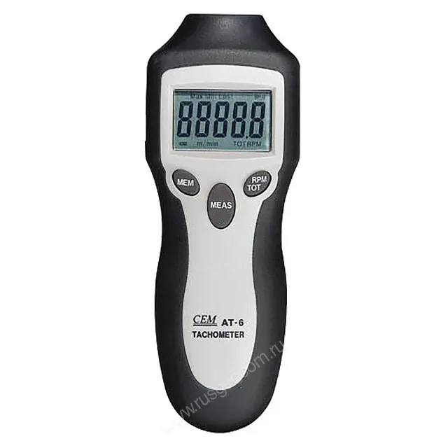 Цифровой тахометр АТ-6 выполнен в прочном и удобном корпусе, который надежно лежит в руке во время работы. Вы можете управлять прибором при помощи одной руки. Большой пятизначный дисплей оснащен подсветкой для работы в условиях недостаточной освещенности. Встроенная память позволяет запомнить максимальное, минимальное или последнее измеренное значение. Питание тахометра АТ-6 осуществляется от одной 9-вольтовой батарейки типа "Крона", обеспечивающей длительную эксплуатацию прибора.