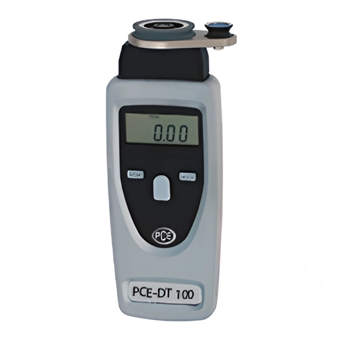 Цифровой тахометр PCE DT-100 позволяет бесконтактно и контактно, с использованием адаптеров измерять частоту вращения крутящихся механизмов или скорость движения нити, стекловолокна, провода.