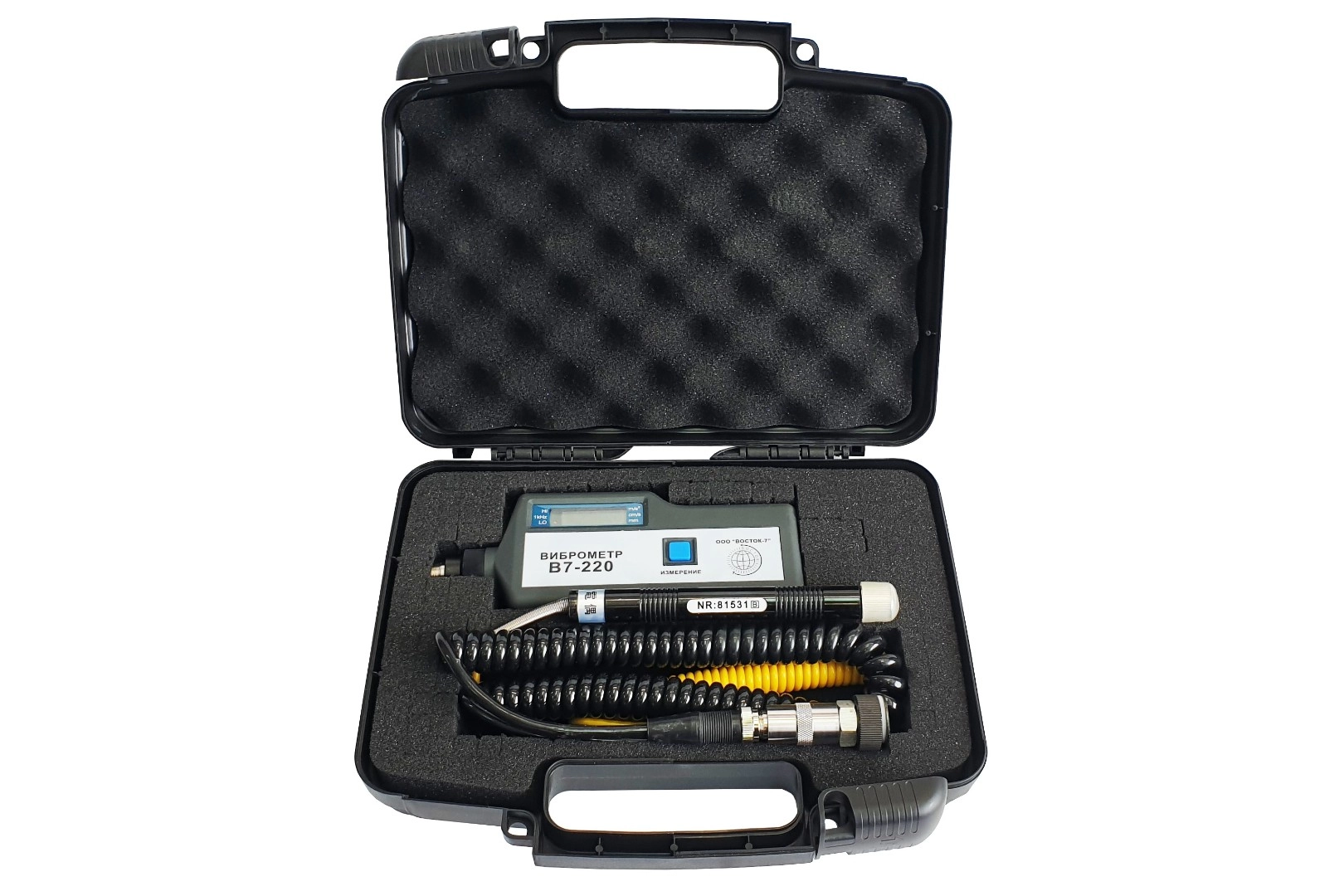 Виброметр В7-220 (без батарейки Крона LR61/6F22) на выбор: · с выносным датчиком · со встроенным датчиком и щупом коротким для измерений на высоких частотах Упаковочный кейс |