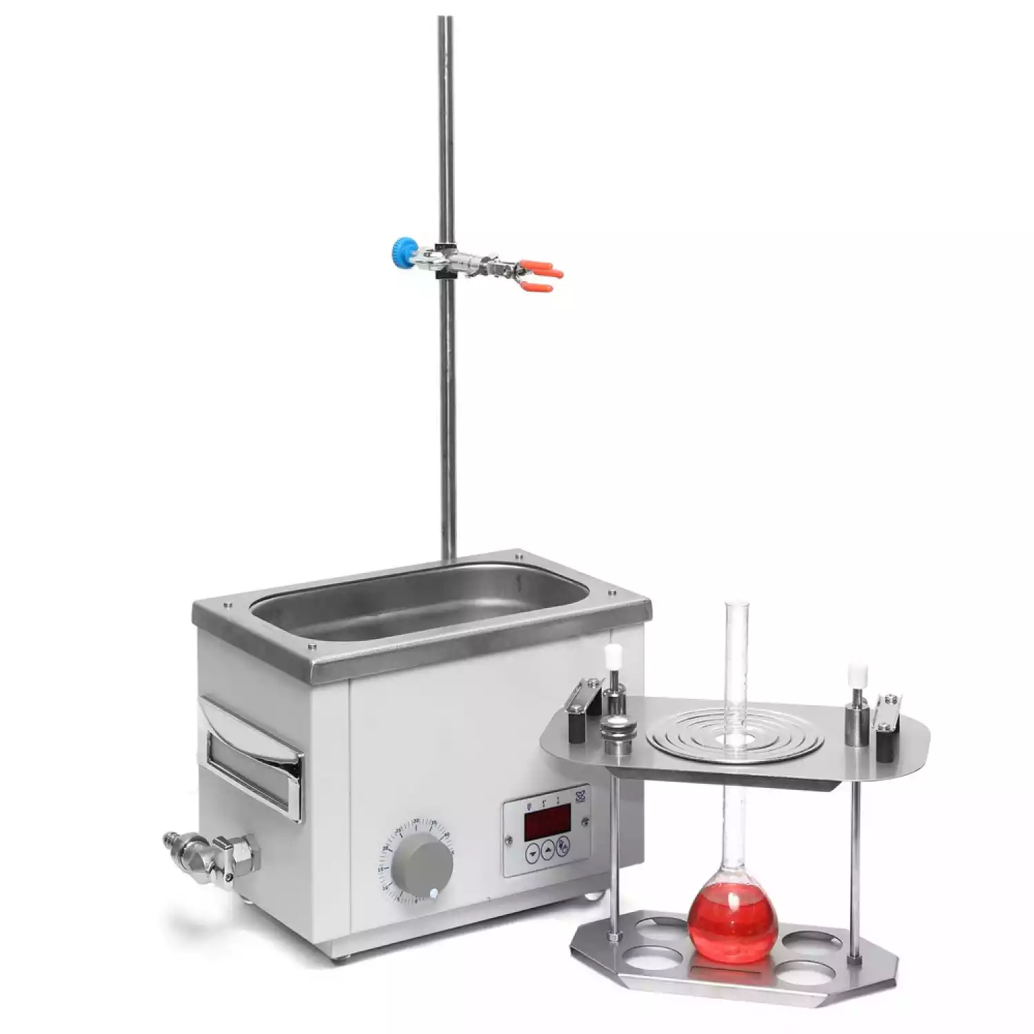 Универсальная баня ЛБ11‑Ш оснащена легко извлекаемой корзиной с подвижным дном для размещения лабораторной посуды различного размера и стальными концентрическими кольцами для ее уплотнения.