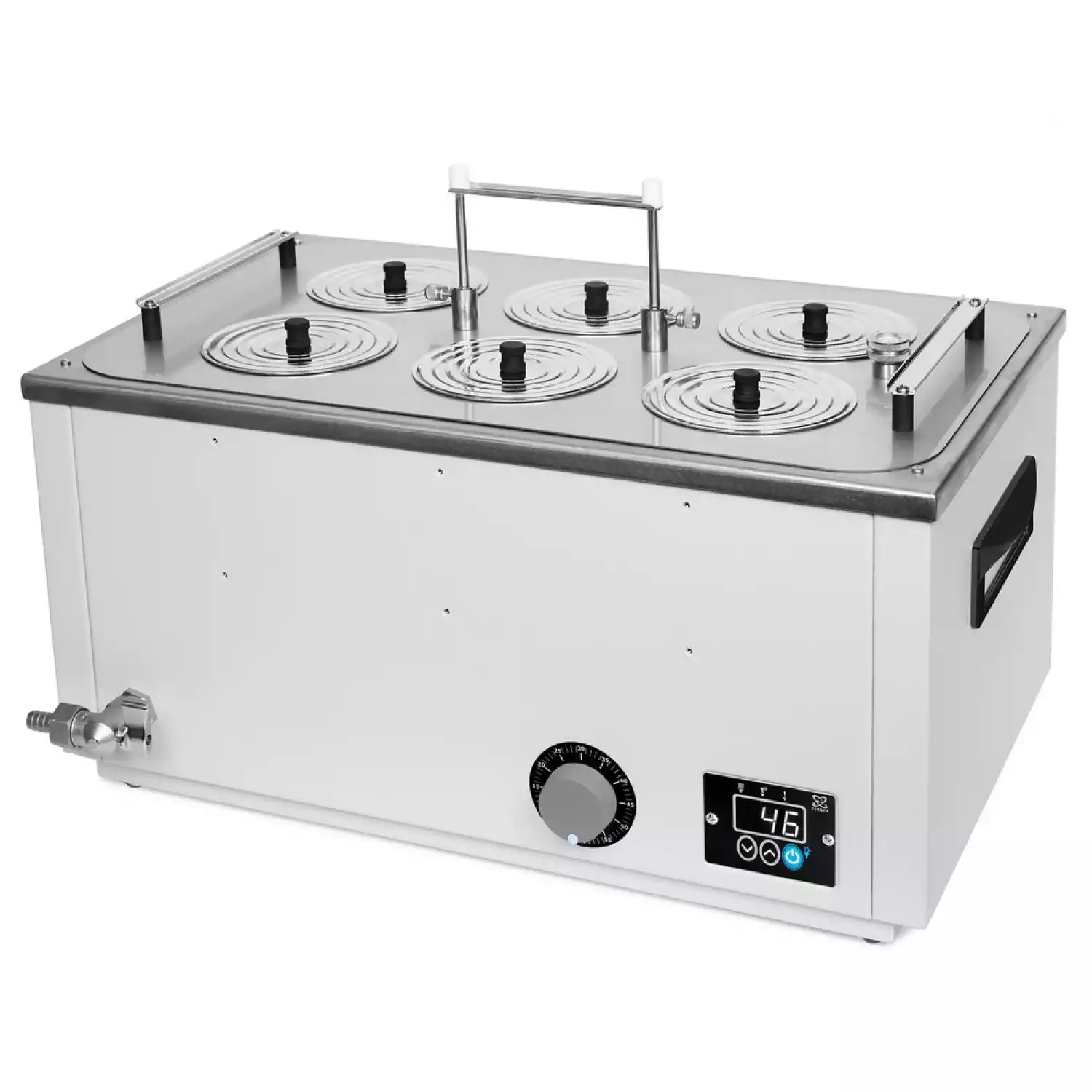 Универсальная баня ЛБ62 оснащена легко извлекаемой корзиной с подвижным дном для размещения лабораторной посуды различного размера и стальными концентрическими кольцами для ее уплотнения.