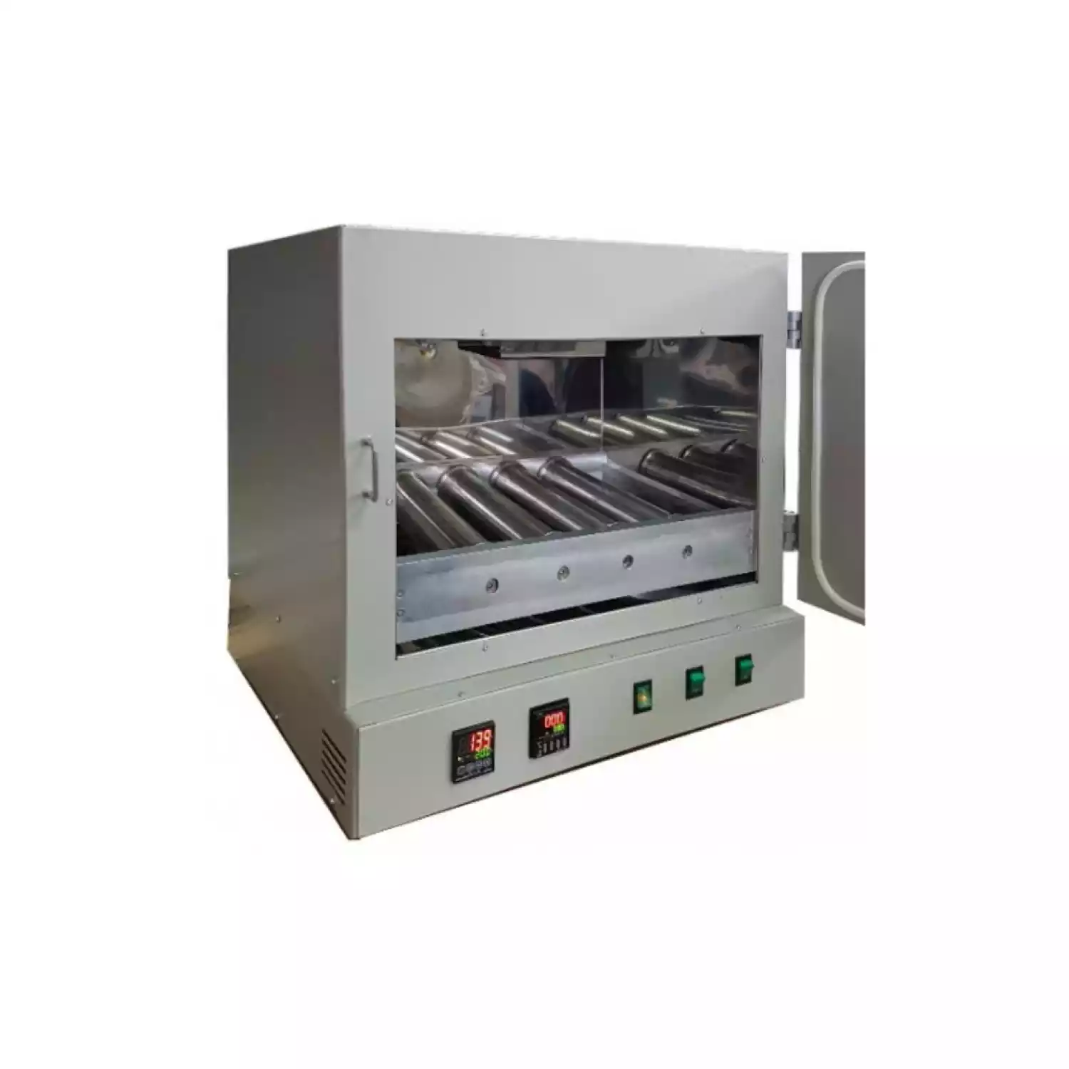 Роликовая печь ДА-РП20 предназначена для обработки растворов при температура до 200 градусов Цельсия. Раствор помещается в специальную герметичную ячейку, которая помещается на ролики печи и подвергается нагреву и вращению. Печь снабжена устройством принудительной конвекции, что обеспечивает равномерность температуры по объему печи. Управление печи происходит посредством установки температуры на приборе. Имеется таймер для установки отложенного старта или отложенного стопа, а так же отдельная возможность включить или выключить вращение роликов.