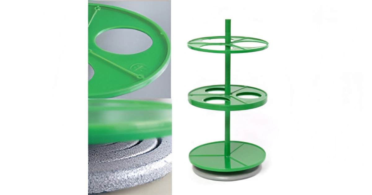 Штатив ПЭ-2950 для 3-х цилиндрических делительных воронок 1000мл предназначен для установки и хранения 3-х цилиндрических делительных воронок объемом 1,0 л.