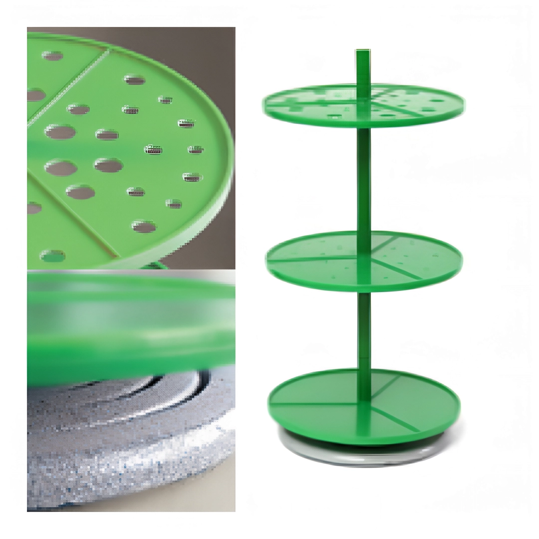 Устойчивость штатива обеспечивает массивное металлическое основание (круглое или квадратное). Конструкция предусматривает возможность изменения высоты расположения верхних дисков.
