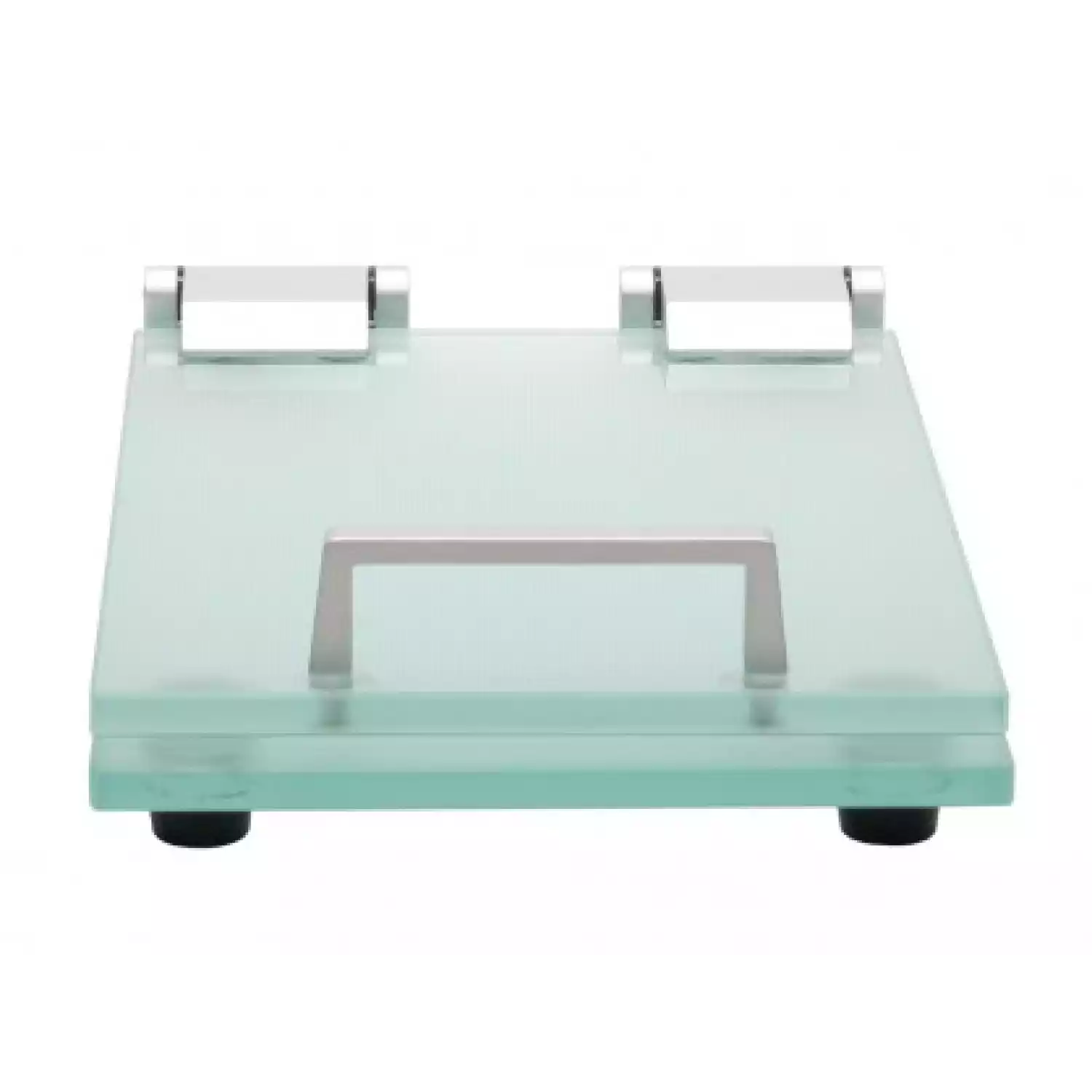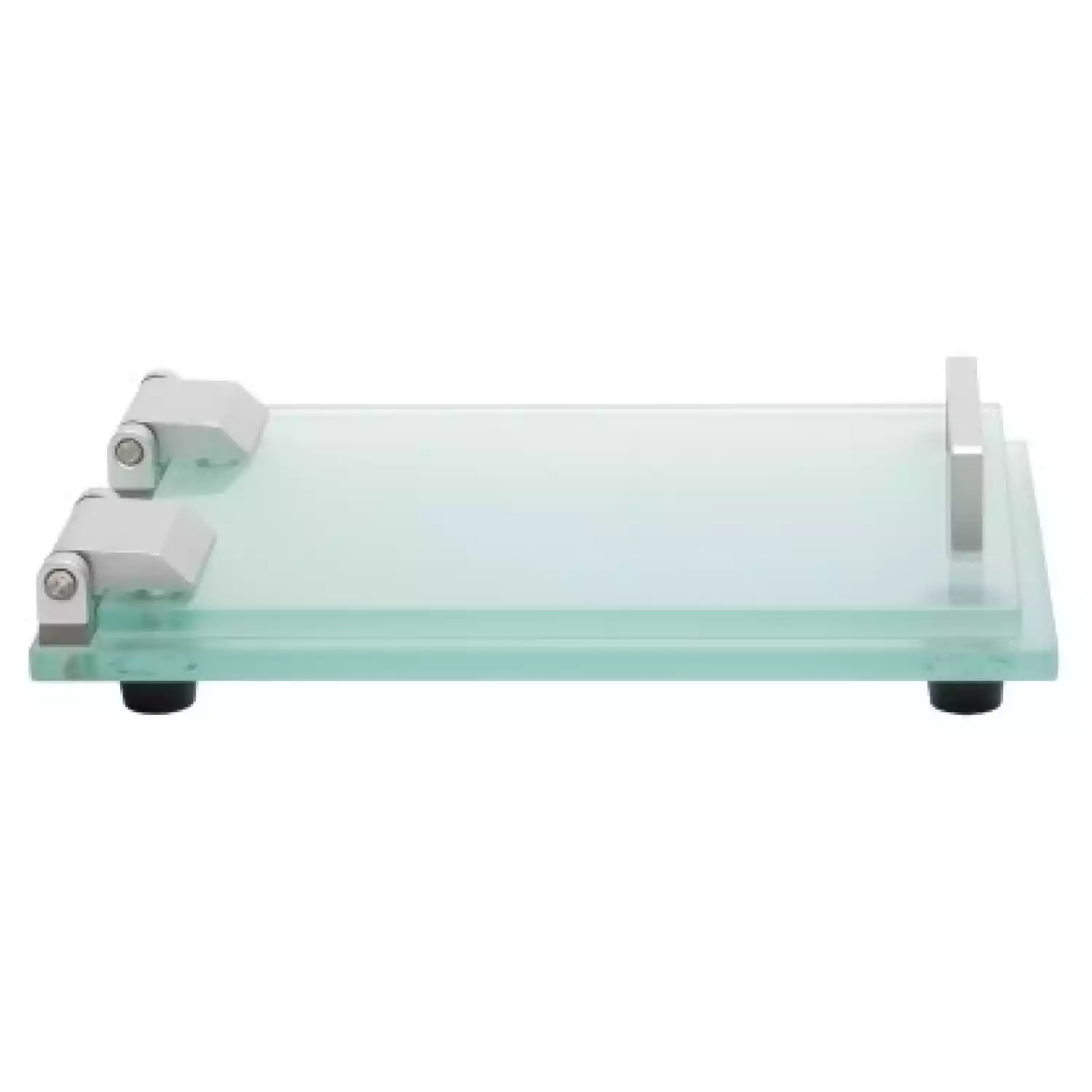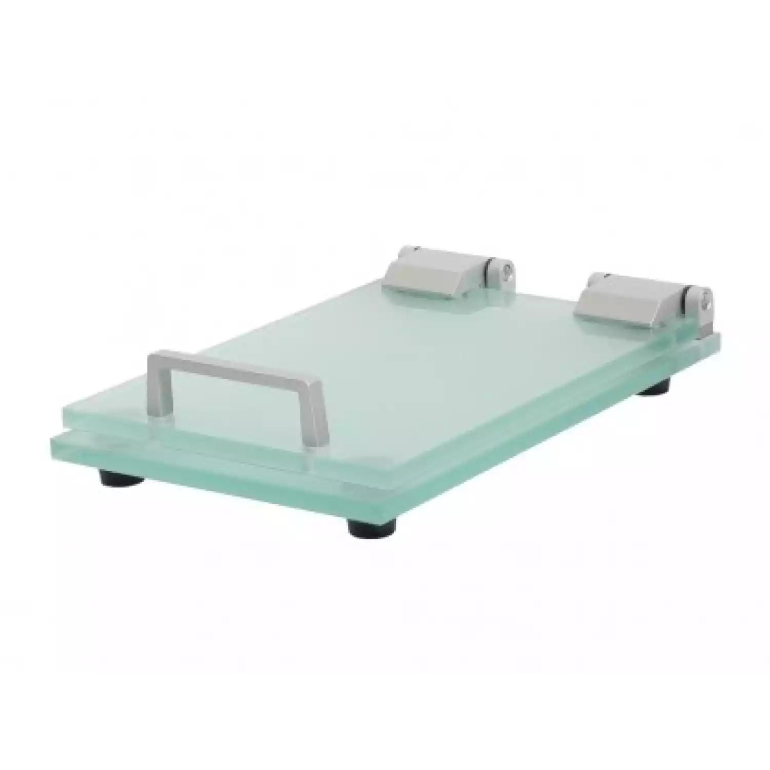 Пресс состоит из двух стеклянных пластин с шероховатой поверхностью, обеспечивает стабильный фиксированный зазор между пластинами. Имеет подставки и ручку для открывания.