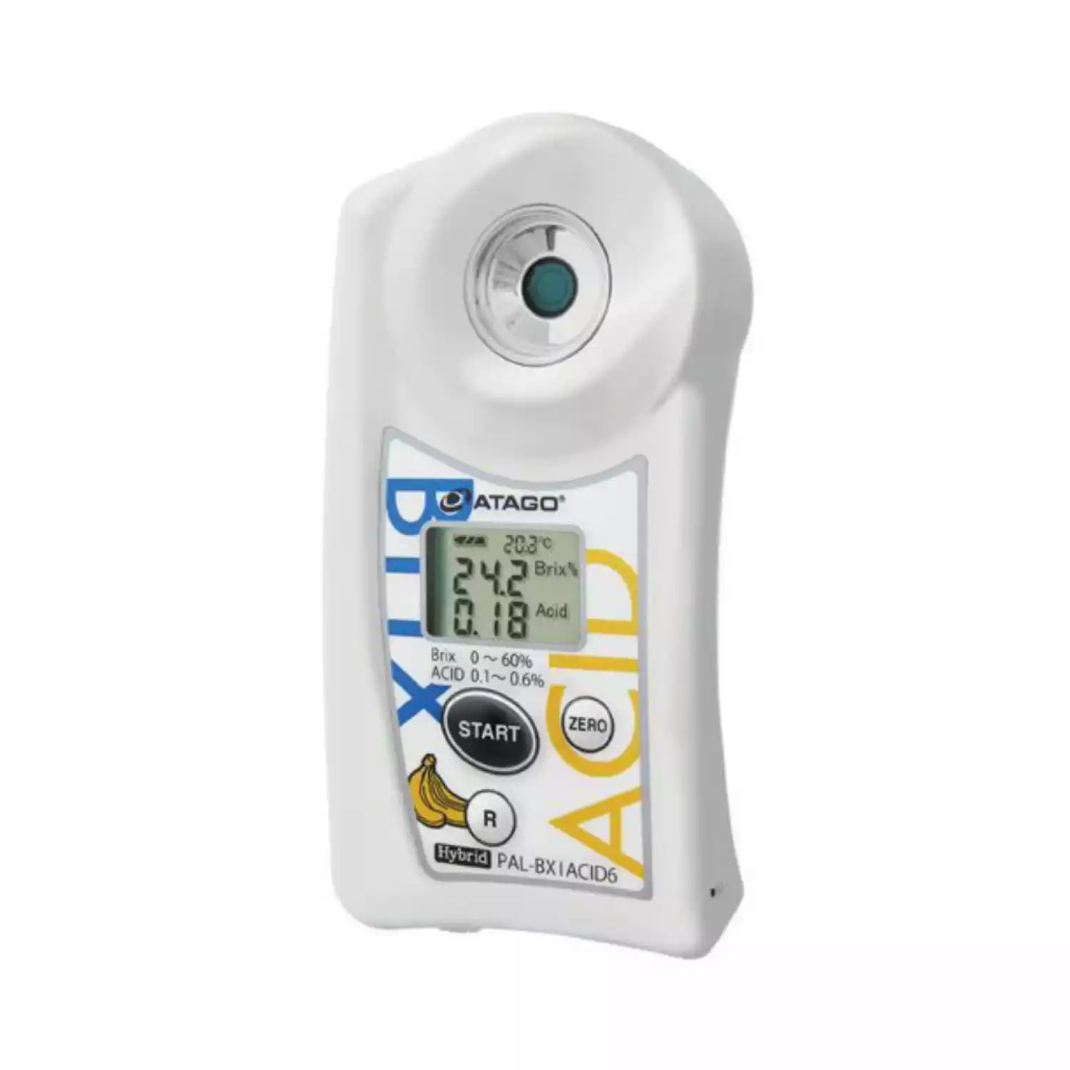 Это уникальный прибор, не имеющий аналогов в мире. Теперь Вам не нужны реагенты и расходные материалы. Более того, теперь этот прибор может также работать в режиме рефрактометра. Таким образом на одном приборе Вы можете измерить как кислотность бананов, так и их сахаристость. Достаточно поместить каплю испытуемого сока в измерительную ячейку и нажать кнопку «старт». Данный прибор может использоваться для определения сахарокислотного коэффициента (sugar/acid ratio).