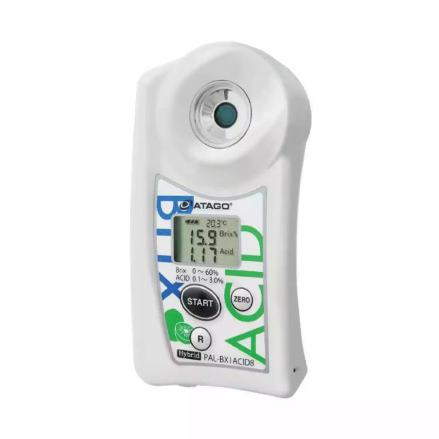 Это уникальный прибор, не имеющий аналогов в мире. Теперь Вам не нужны реагенты и расходные материалы. Более того, теперь этот прибор может также работать в режиме рефрактометра. Таким образом на одном приборе Вы можете измерить как кислотность киви, так и их сахаристость. Достаточно поместить каплю испытуемого сока в измерительную ячейку и нажать кнопку «старт». Данный прибор может использоваться для определения сахарокислотного коэффициента (sugar/acid ratio).