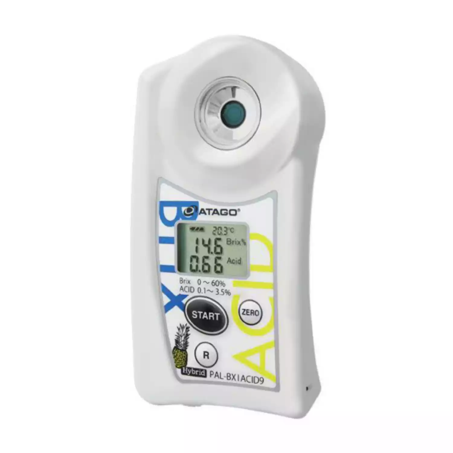 Это уникальный прибор, не имеющий аналогов в мире. Теперь Вам не нужны реагенты и расходные материалы. Более того, теперь этот прибор может также работать в режиме рефрактометра. Таким образом на одном приборе Вы можете измерить как кислотность ананасов, так и их сахаристость. Достаточно поместить каплю испытуемого сока в измерительную ячейку и нажать кнопку «старт». Данный прибор может использоваться для определения сахарокислотного коэффициента (sugar/acid ratio).