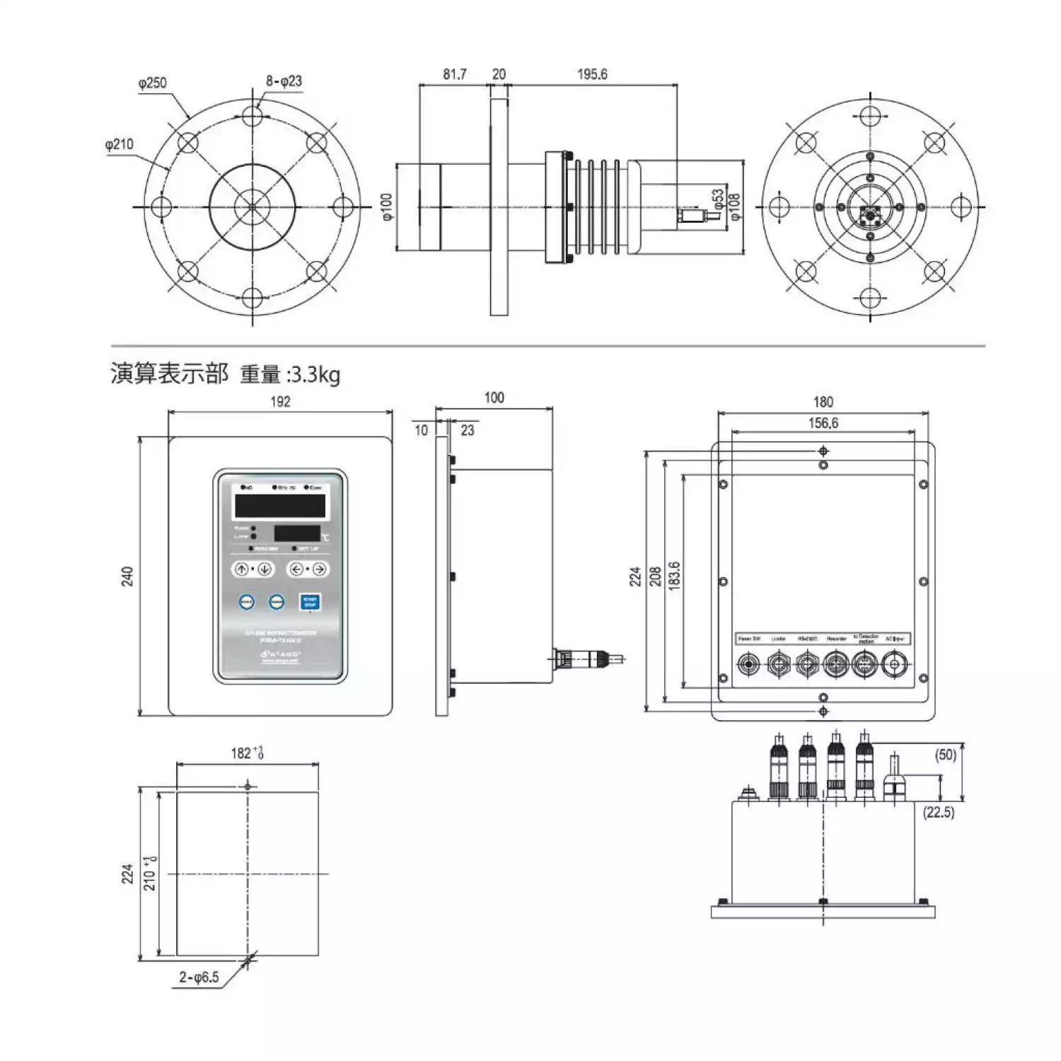 | Выходы: | RS-232C, DC4 20mA Выход с открытым коллектором установки верхнего и нижнего ограничения (сигнализация тревоги). Возможность вывода следующих данных: Коэффициент преломления (nD), Brix или концентрация (%), температура (°C), любая пользовательская шкала |