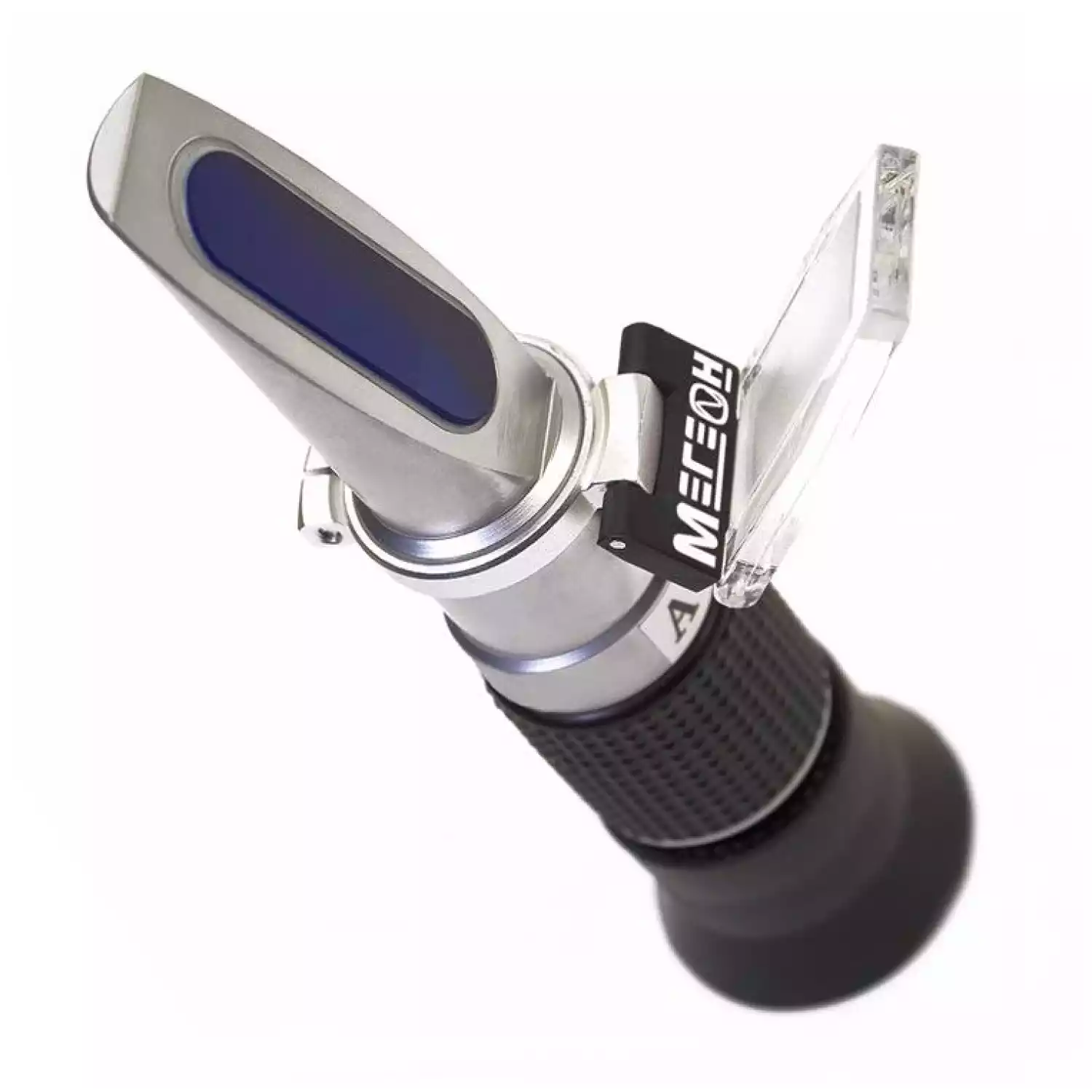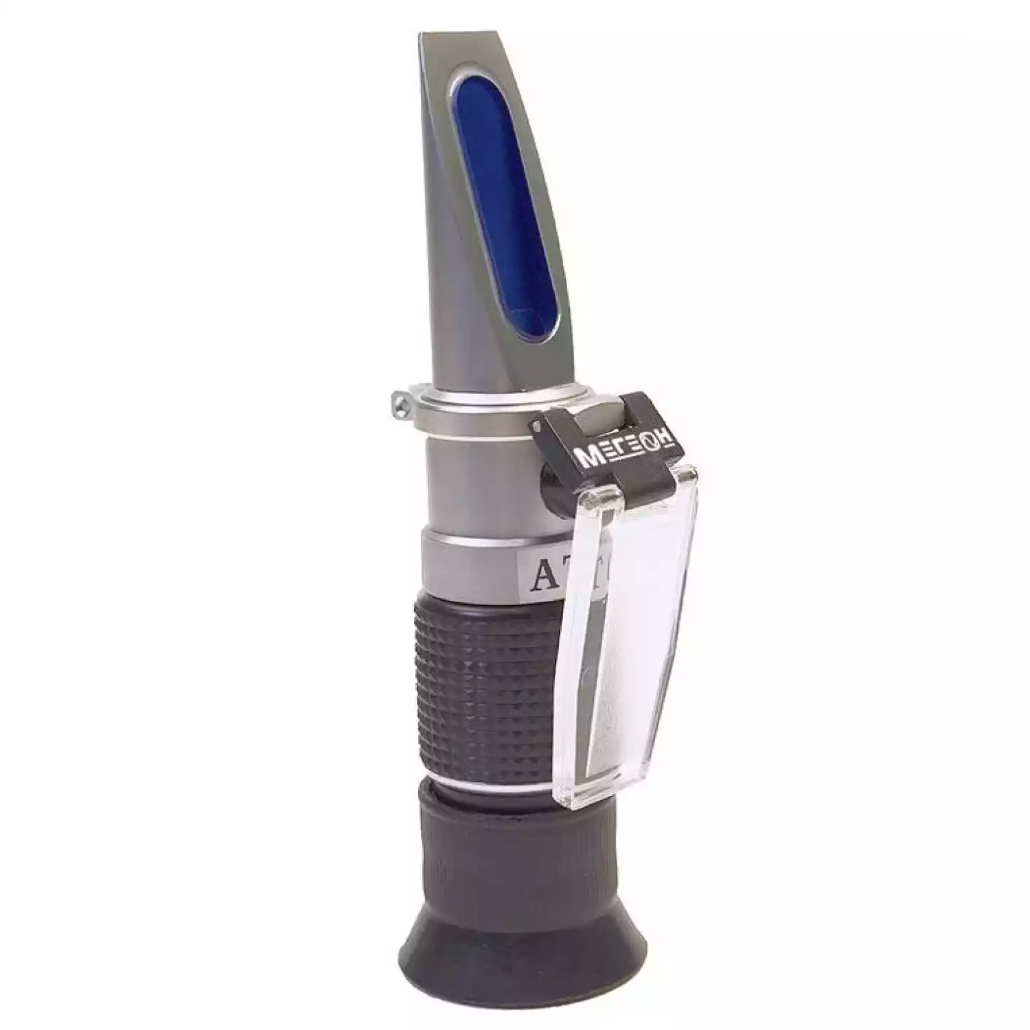 МЕГЕОН 72010 относится к оптическим измерительным приборам — рефрактометрам, которые предназначены для определения коэффициента преломления исследуемого вещества и проецировании отраженного света на специально отградуированный экран. Характеристики жидкости (концентрация, плотность и т.д.), устанавливаемые рефрактометром, определяют вид шкалы, нанесенной на экран.