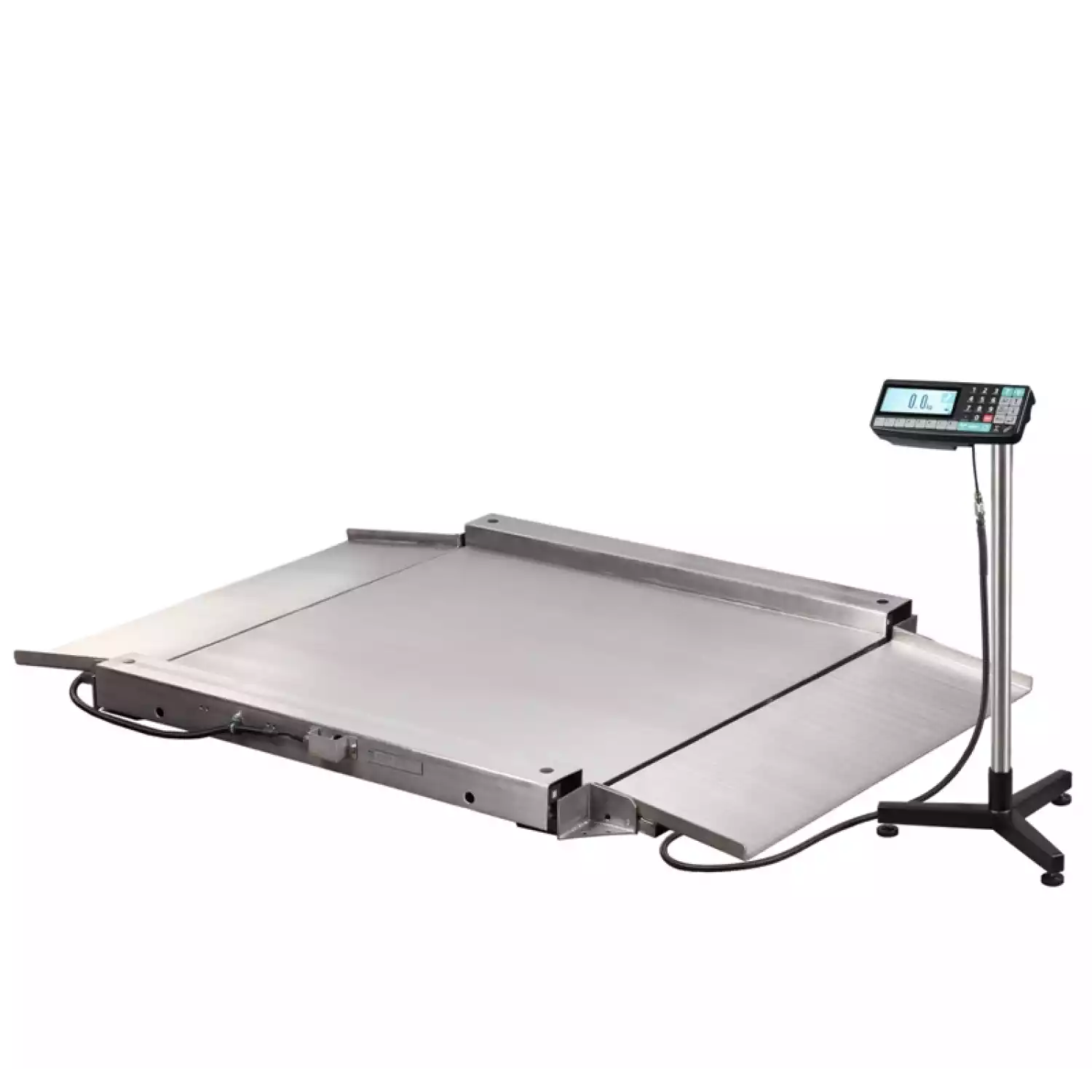 Весы 4D-LA.S-2-1000-RA состоят из модуля взвешивающего и терминала. Пандусная грузоприемная платформа выполнена из нержавеющей стали. Терминал регистрирует товароучетные операции (прием, отпуск, списание, инвентаризация), интегрируется  в системы учета. Обмен информацией реализован  по интерфейсам Ethernet и RS-232, а также с помощью USB-flash накопителя.