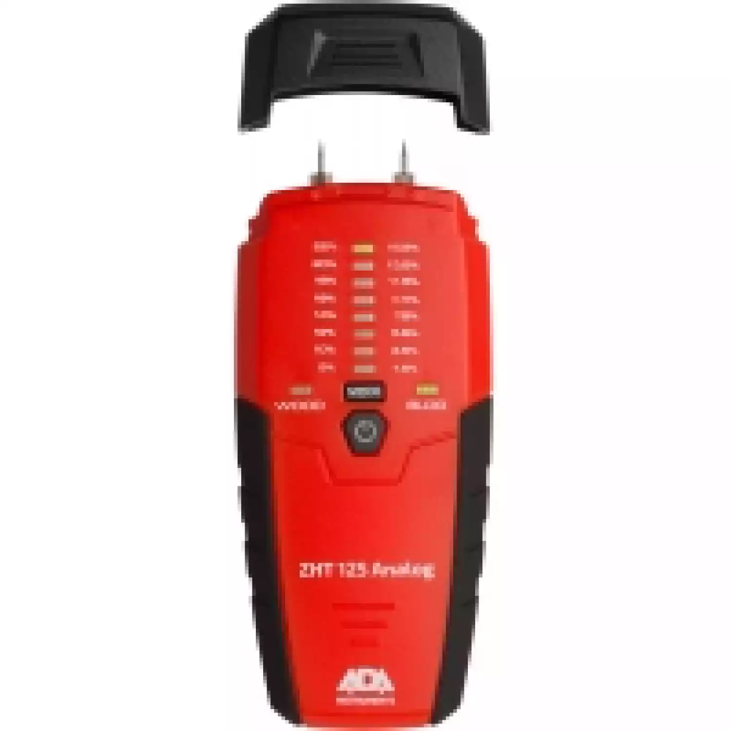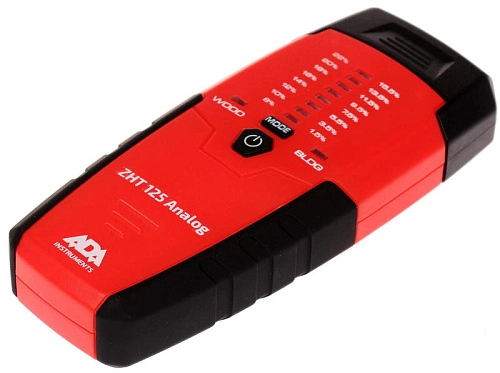 ZHT 125 Analog — измеритель влажности измеряет содержание влаги путем определения удельного электрического сопротивления материала с помощью двух электродов. Электронная схема обрабатывает полученный сигнал и содержание влаги отображается светодиодными индикаторами. Используется эото прибор для измерения влажности дерева, штукатурки, бетона. Применяется в строительстве, на складах пиломатериалов, сушильных установках древесины.